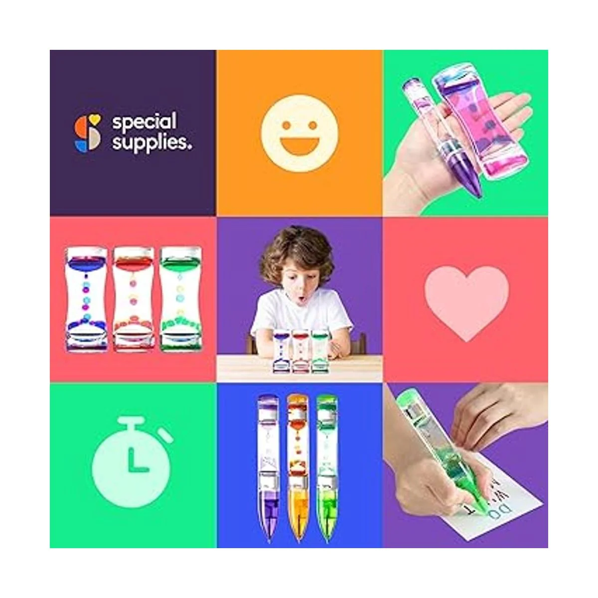 Colores emocionantes: cada pedido viene con 3 temporizadores de movimiento líquido y 3 bolígrafos de movimiento líquido, cada uno con sus propios colores únicos en el interior, dando a los niños aún más opciones para jugar También son una gran sorpresa de cumpleaños o vacaciones.