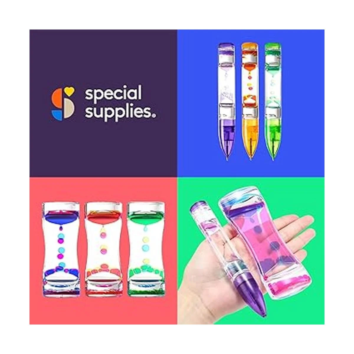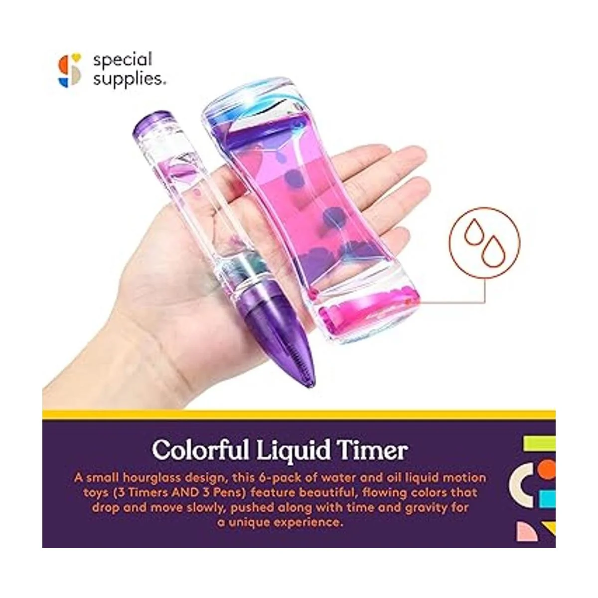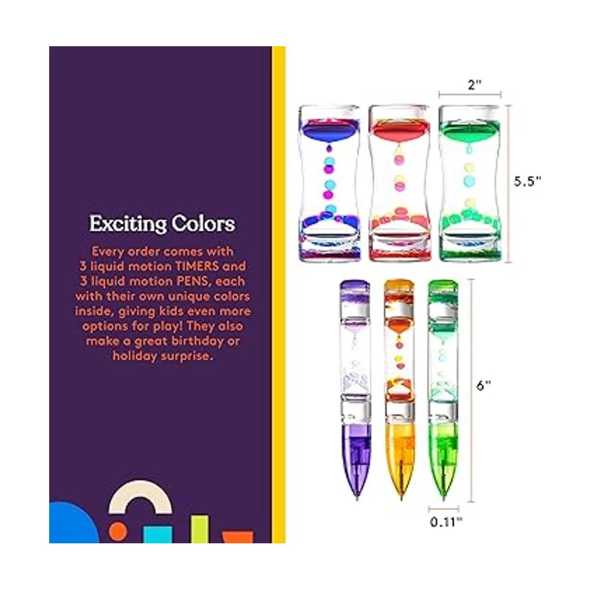 Colorido temporizador líquido: un pequeño diseño de reloj de arena, este paquete de 6 juguetes de movimiento líquido de agua y aceite 3 temporizadores y 3 bolígrafos cuenta con hermosos colores fluidos que caen y se mueven lentamente, empujados junto con el tiempo y la gravedad para una experiencia única.