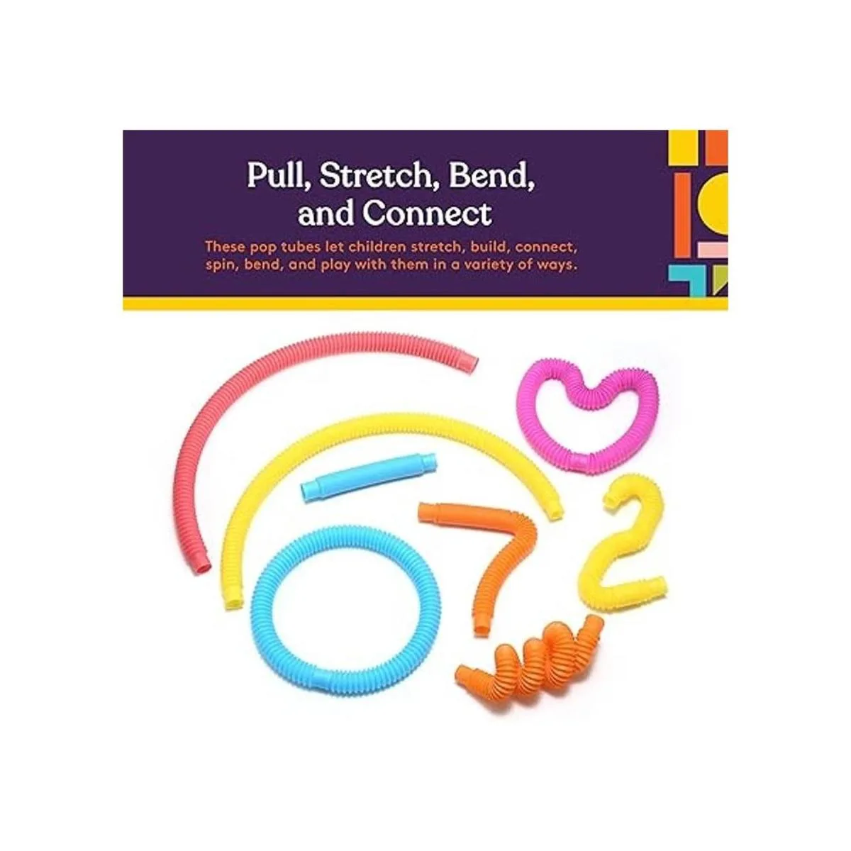 Colorido juego y divertidos tubos: un divertido juguete interactivo para niños, estos divertidos tubos permiten que los niños se estiren, construyan, conectan, giren, doblen y jueguen con ellos de una variedad de maneras.