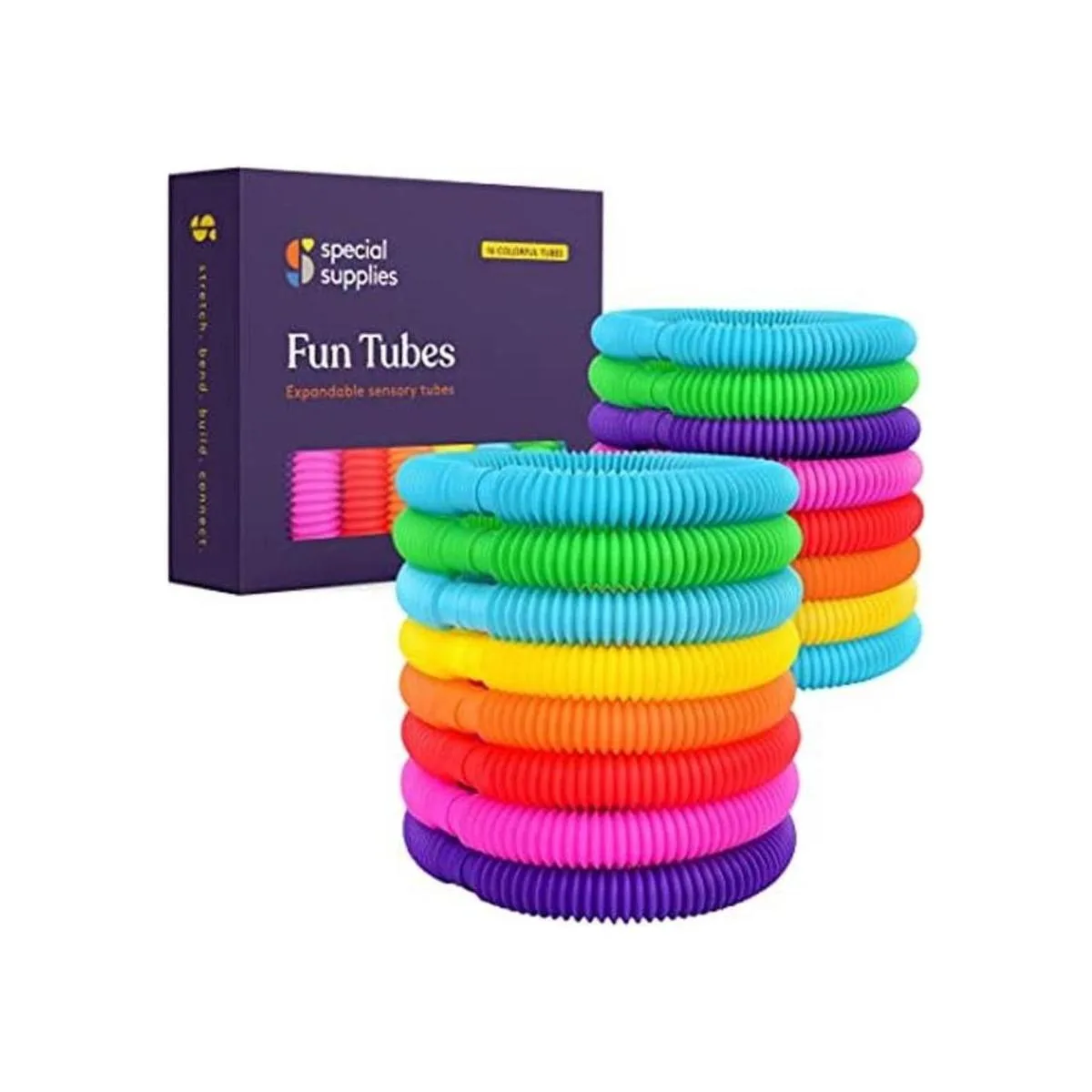 Special Supplies Paquete de 16 tubos divertidos para niños con tirón y estiramiento Pop, dobla, construye y conecta el juguete, proporcionan un juego sensorial táctil y auditivo, colorido, plástico resistente