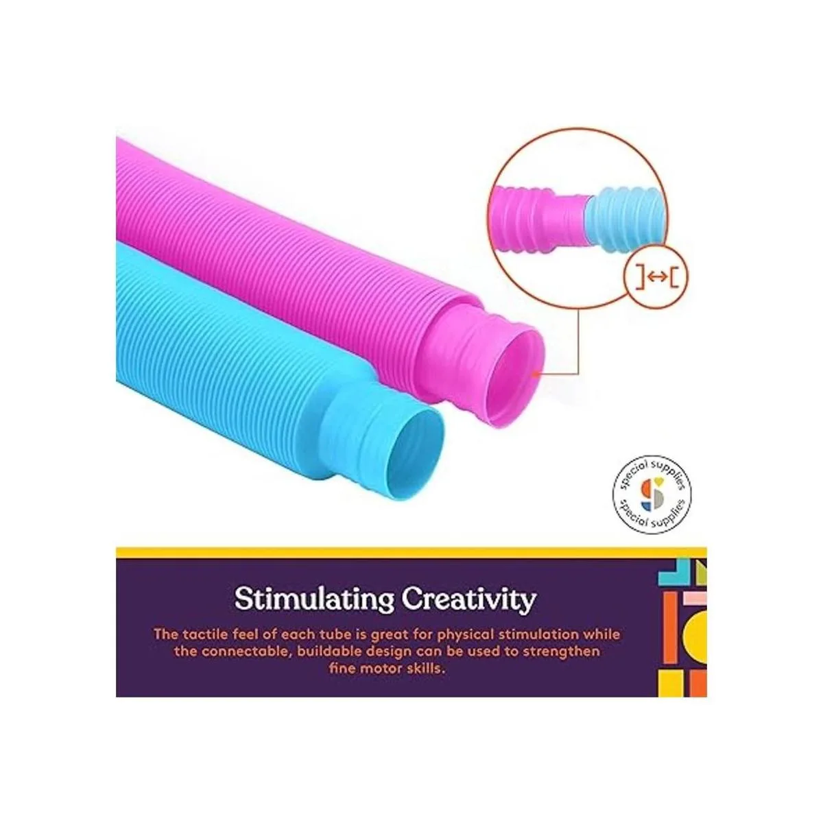 Estimulación de la creatividad: la sensación táctil de cada tubo es ideal para la estimulación física mientras que el diseño conectable y construible se puede utilizar para fortalecer las habilidades motoras finas.