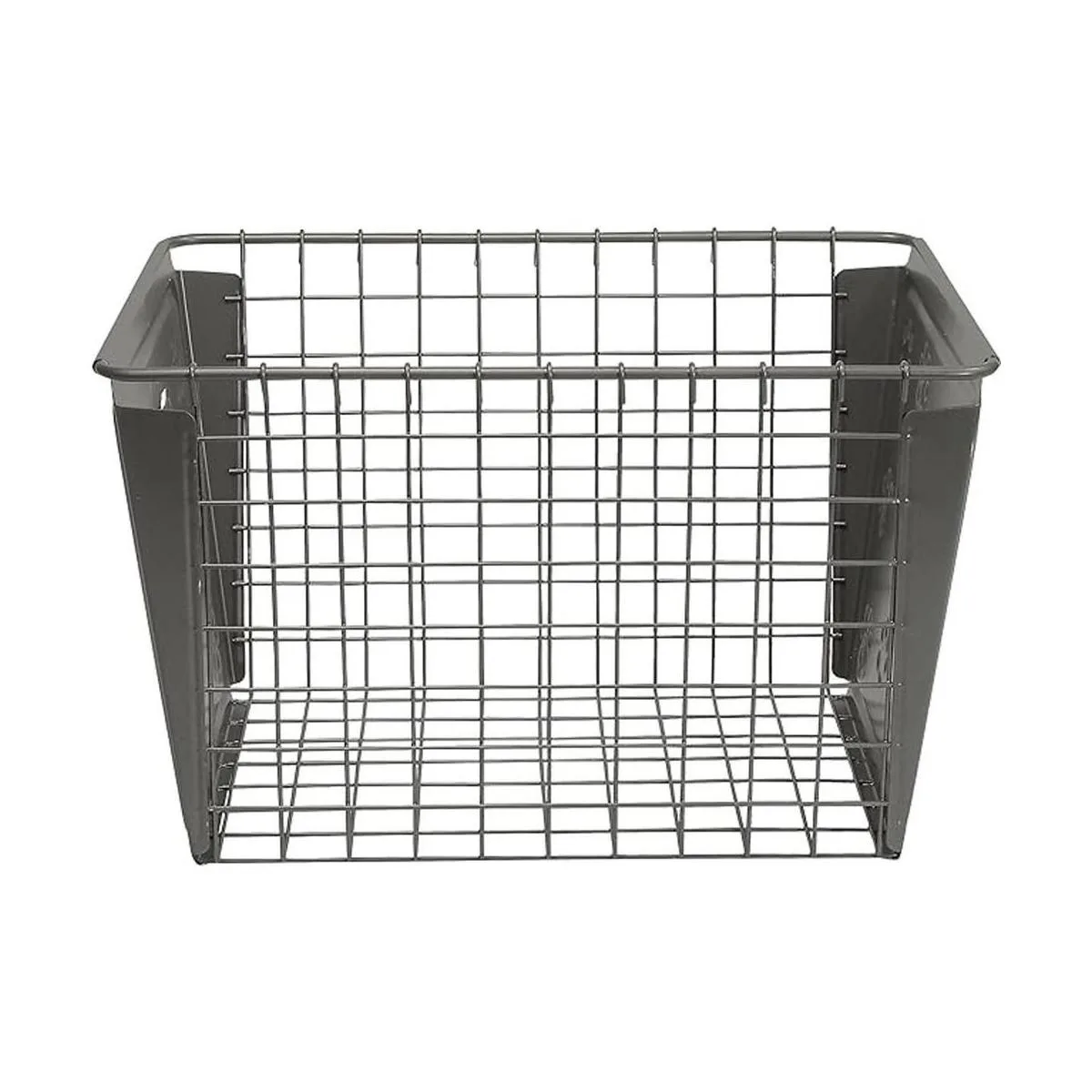Laterales de acero estampado: inspiradas en cestas de casillero de estilo vintage, estas cestas ofrecen encanto de la vieja escuela con calidad moderna. Las asas en el lateral hacen que sea fácil sacar la cesta de un estante o sacar de un cubo para agarrar los artículos que necesitas