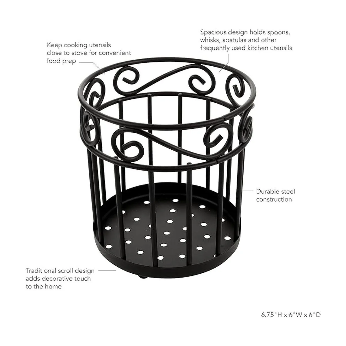 Spectrum Diversified Scroll Grande Holder Kitchen Encimera Organizador de utensilios de cocina Crock para la organización y almacenamiento de cocina, cubiertos y cubiertos, color negro