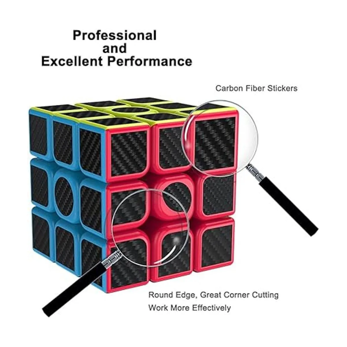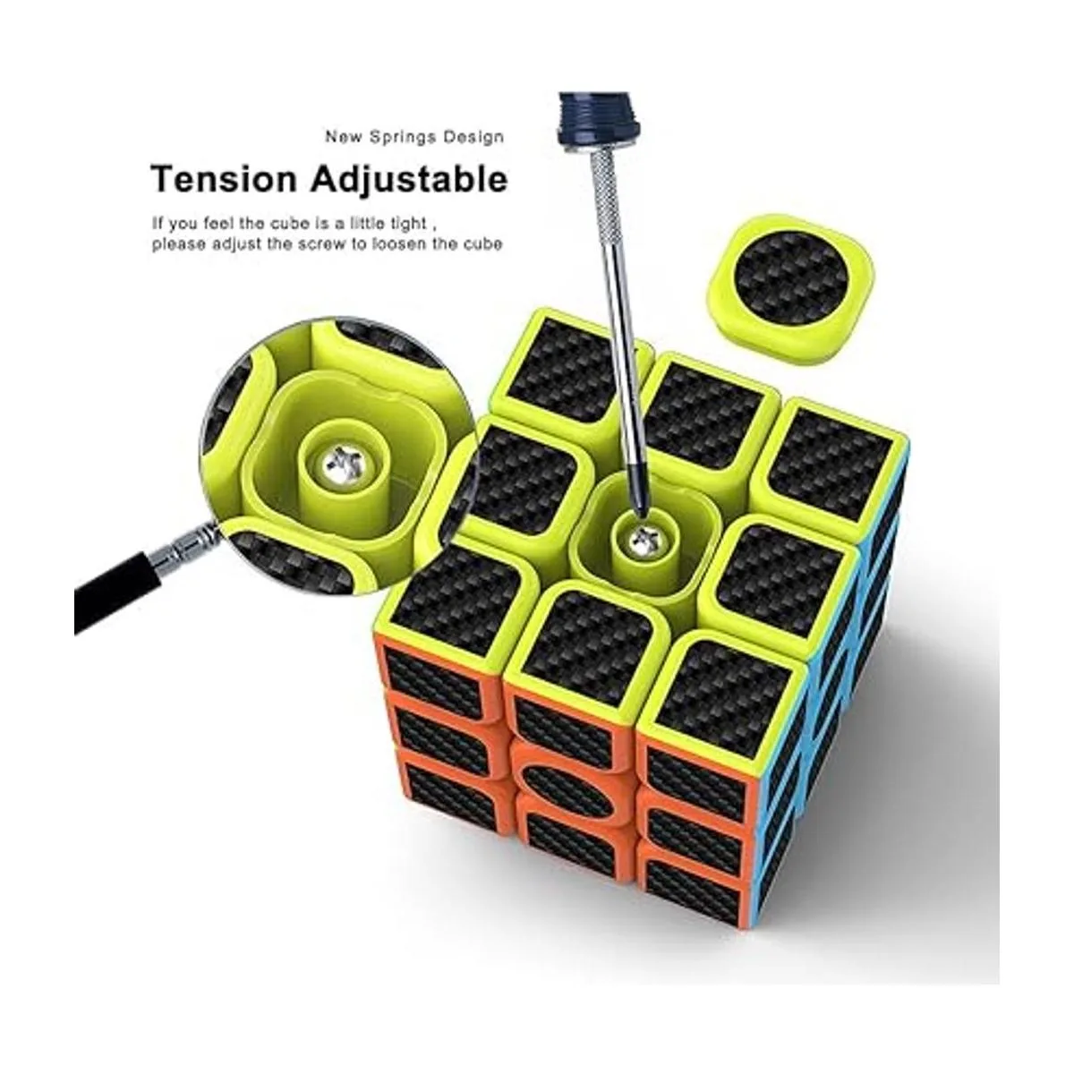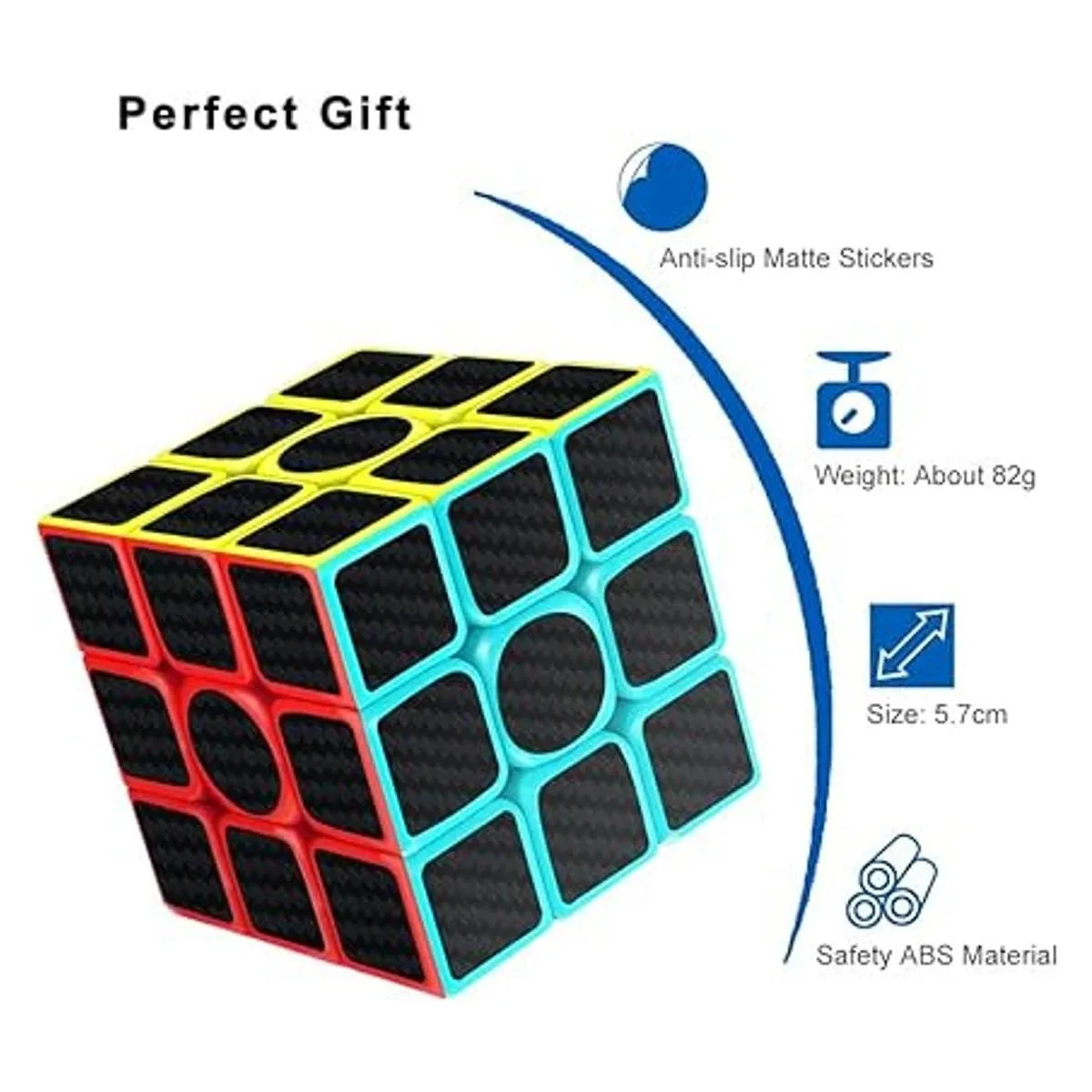 Speed Cube Adhesivo mágico de fibra de carbono de 3 x 3 x 3 pulgadas, color negro, versión mejorada, paquete de 2