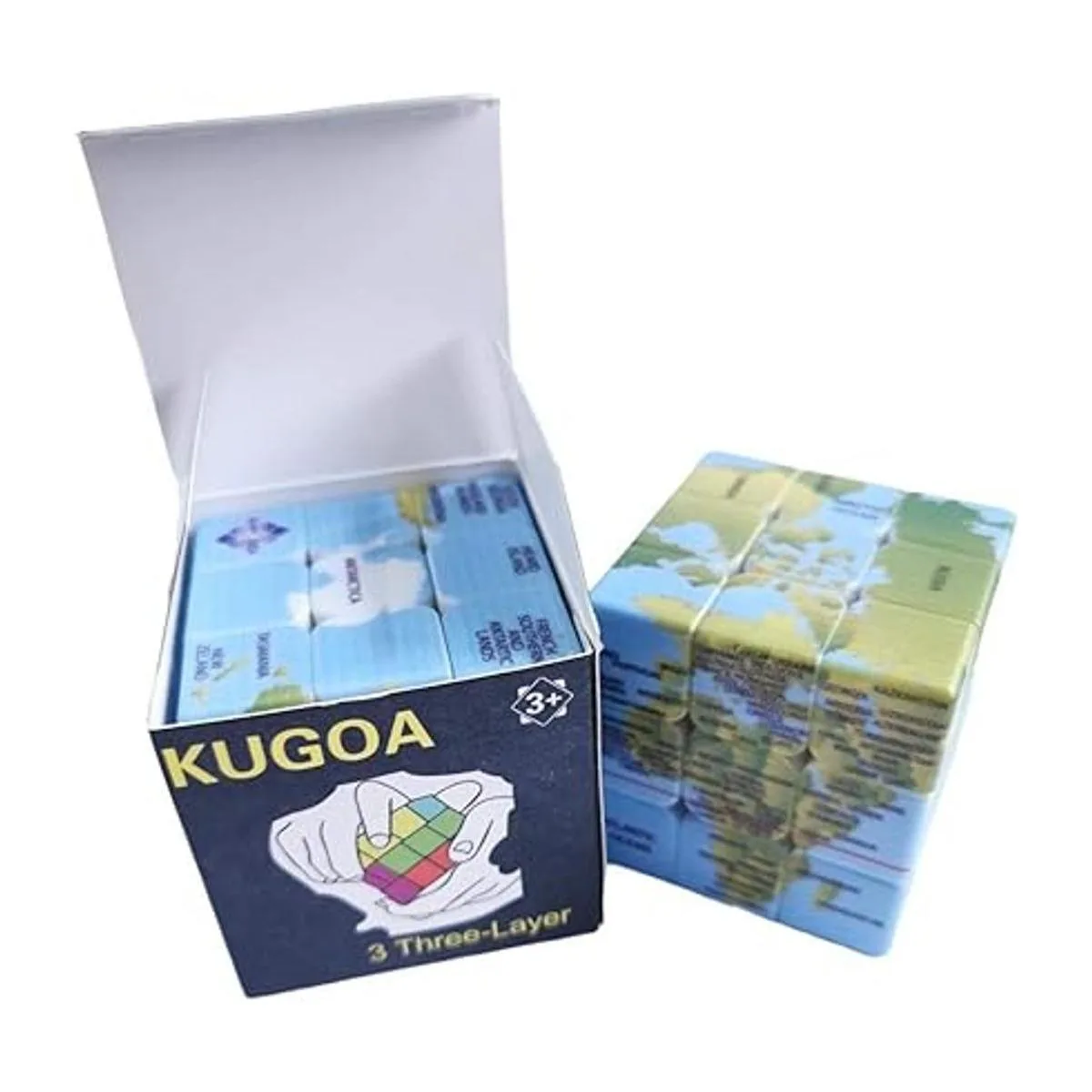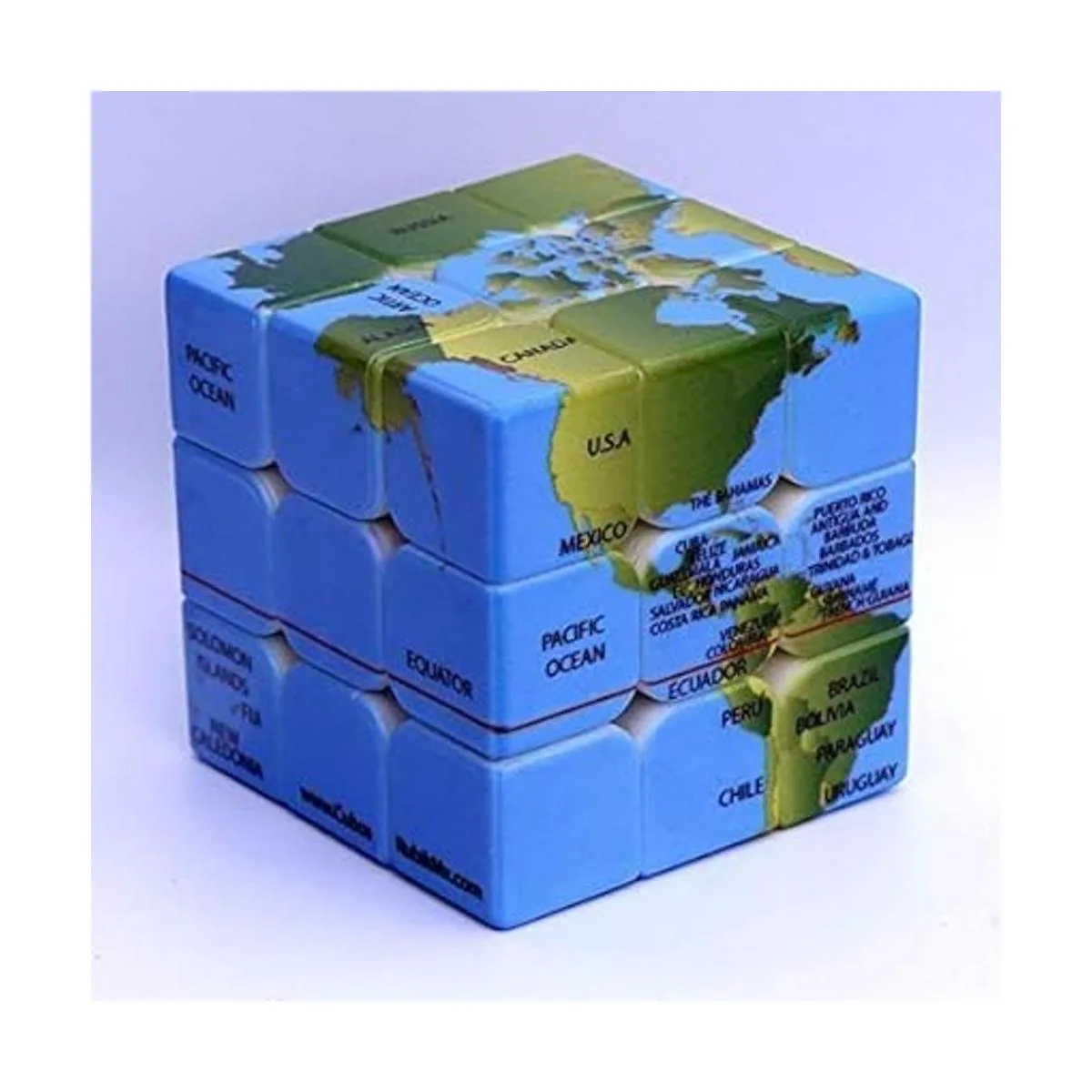 Este cubo de 3 x 3 x 3 está diseñado con el mapa del mundo. El cubo adopta el color brillante de vegetación, marcado cada lugar y nombre del país, lo que hace que el rompecabezas sea más novedoso e interesante