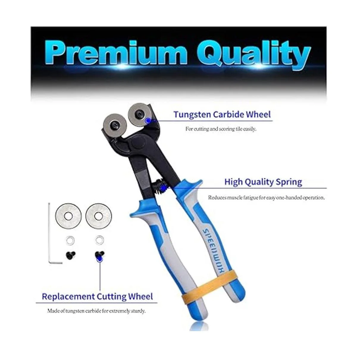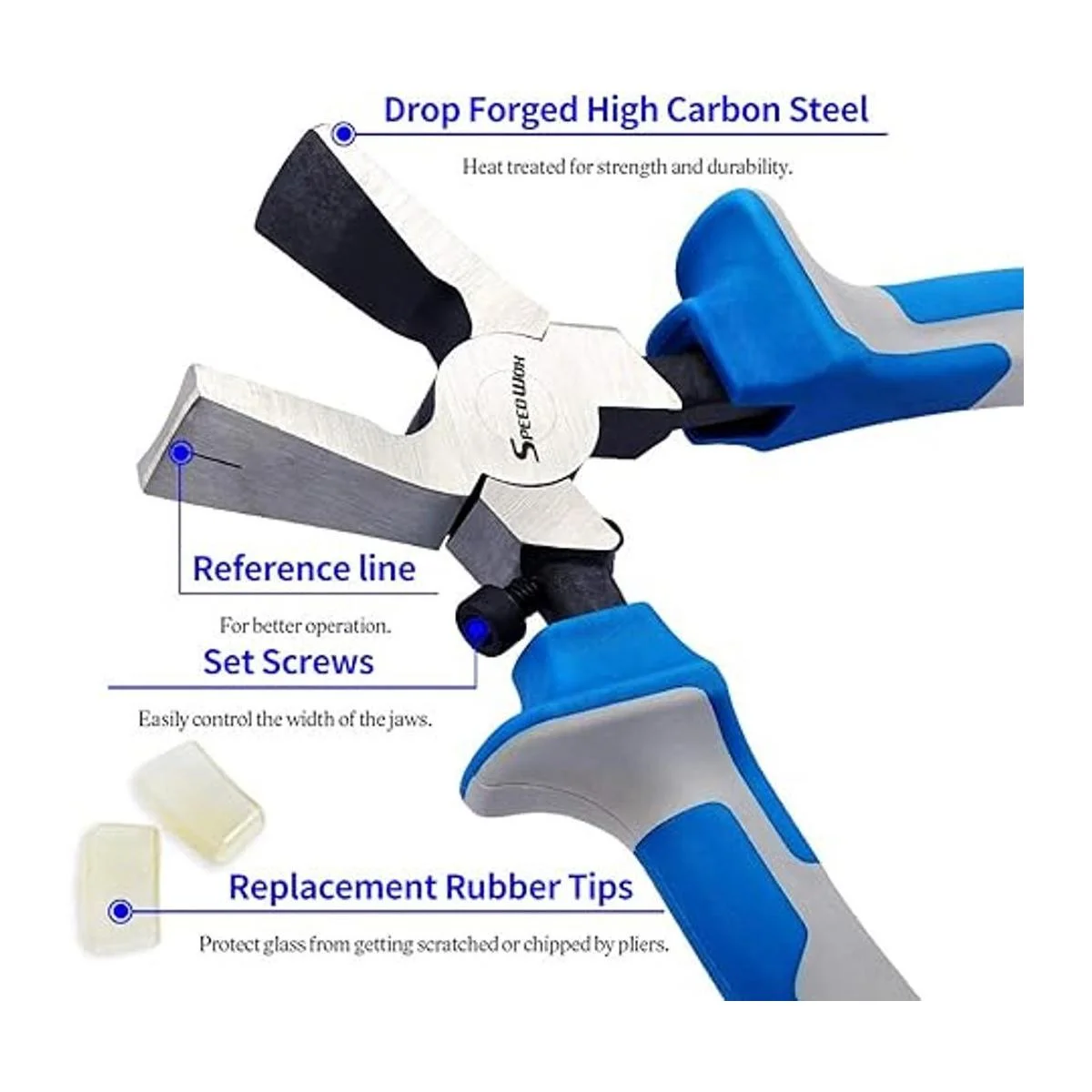 Alicates de alta calidad: el cuerpo está hecho de acero forjado de alto carbono y tratado térmicamente para mayor resistencia y durabilidad, y las ruedas de corte están hechas de carburo cementado YG8 para cortar azulejos de vidrio, porcelana, mosaico, cerámica de pared y suelo, vidrieras fácil y rápidamente. Asas ergonómicas TPR bicolor para un agarre antideslizante y cómodo. Los alicates para correr cuentan con una línea de referencia en la mandíbula que es ideal para romper una puntuación con facilidad. Los alicates Grozer son ideales para mordisquear vidrio lejos de los bordes.