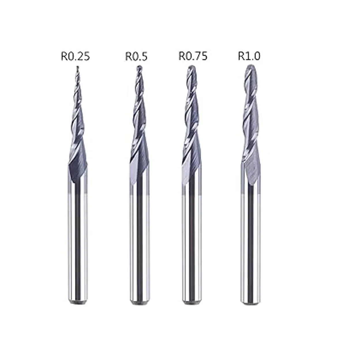 SpeTool 4 unidades por paquete de puntas R0.25 1.0 de 18 pulgadas de extremo cónico molino de cono de punta de carburo CNC para tallar grabado