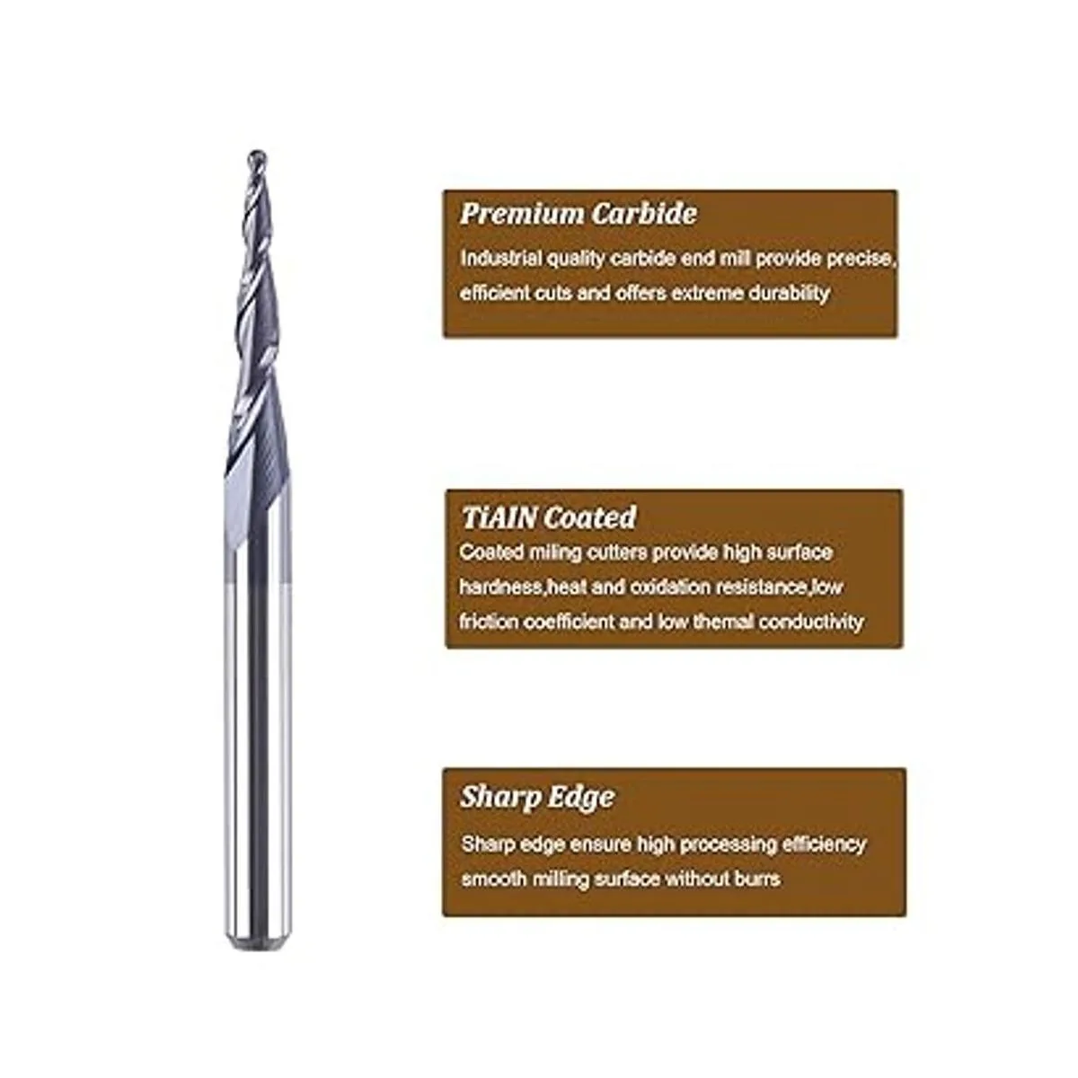 Diámetro del vástago de 1/8 pulgadas, 2 flautas, revestimiento TiAlN para resistencia al desgaste