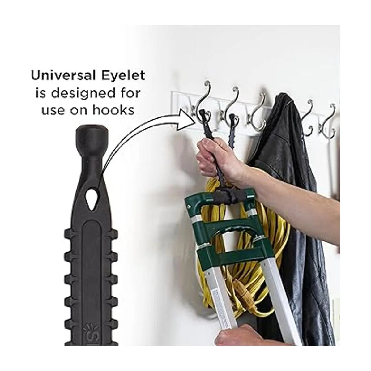 Cuelga de ganchos: el agujero de ojal integrado se empareja con ganchos