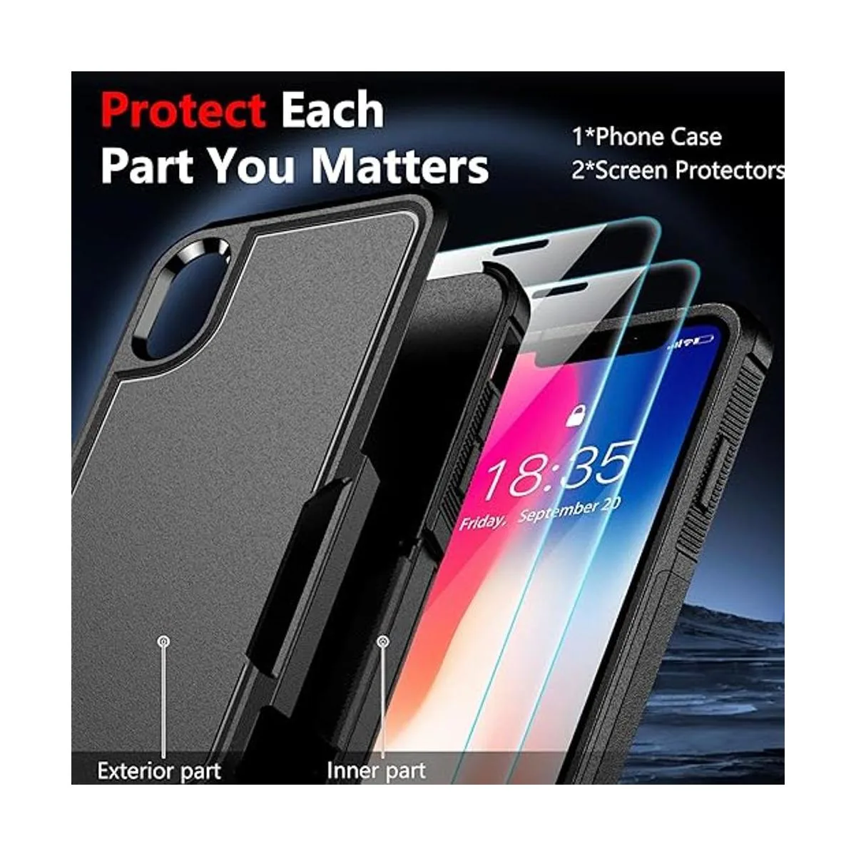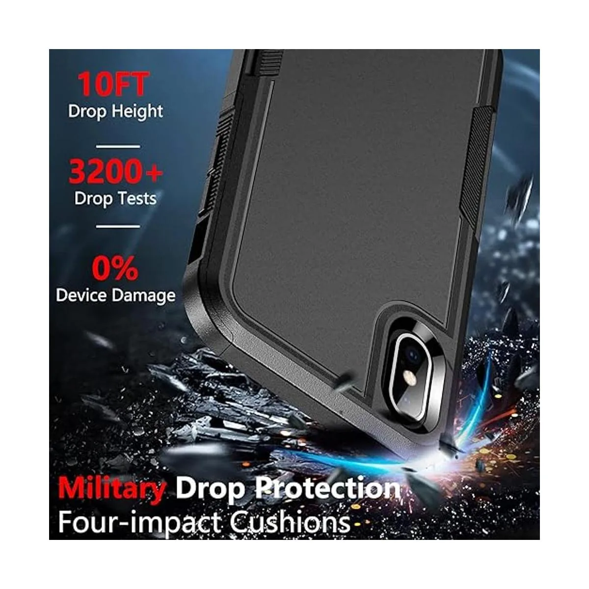 SPIDERCASE Funda para iPhone XXS, doble capa, protección contra caídas de grado militar de 10 pies, antideslizante, 2 protectores de pantalla de vidrio templado, resistente a prueba de golpes para iPhone XXS 5.8, negro
