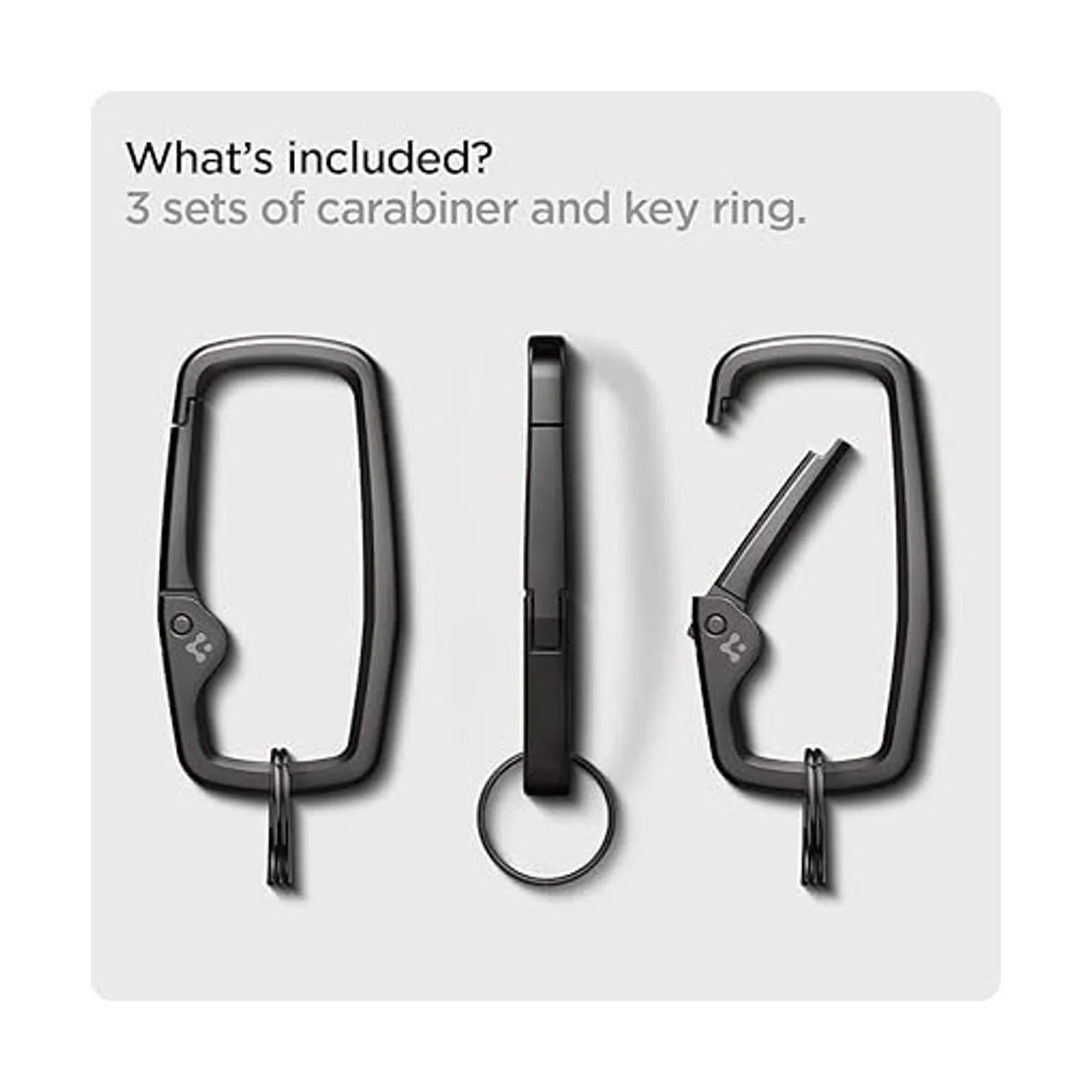 Spigen Carabiner Clips D Ring, Spring Snap Hook, Keyring Keychain Hook with Zinc Alloy Caribeaners 3 Pack