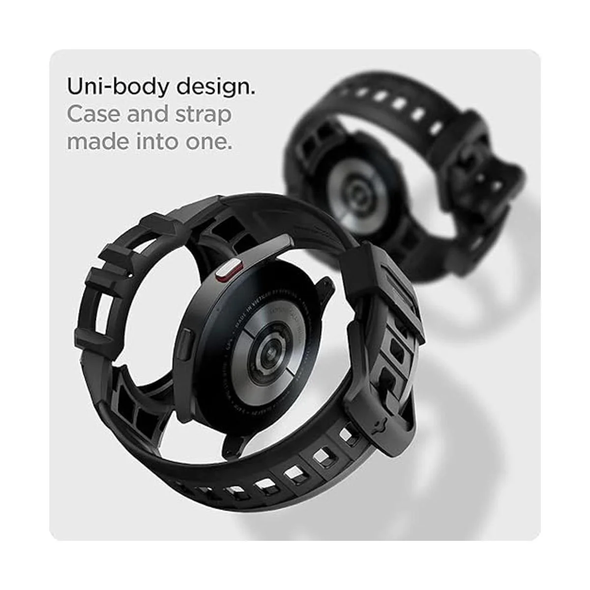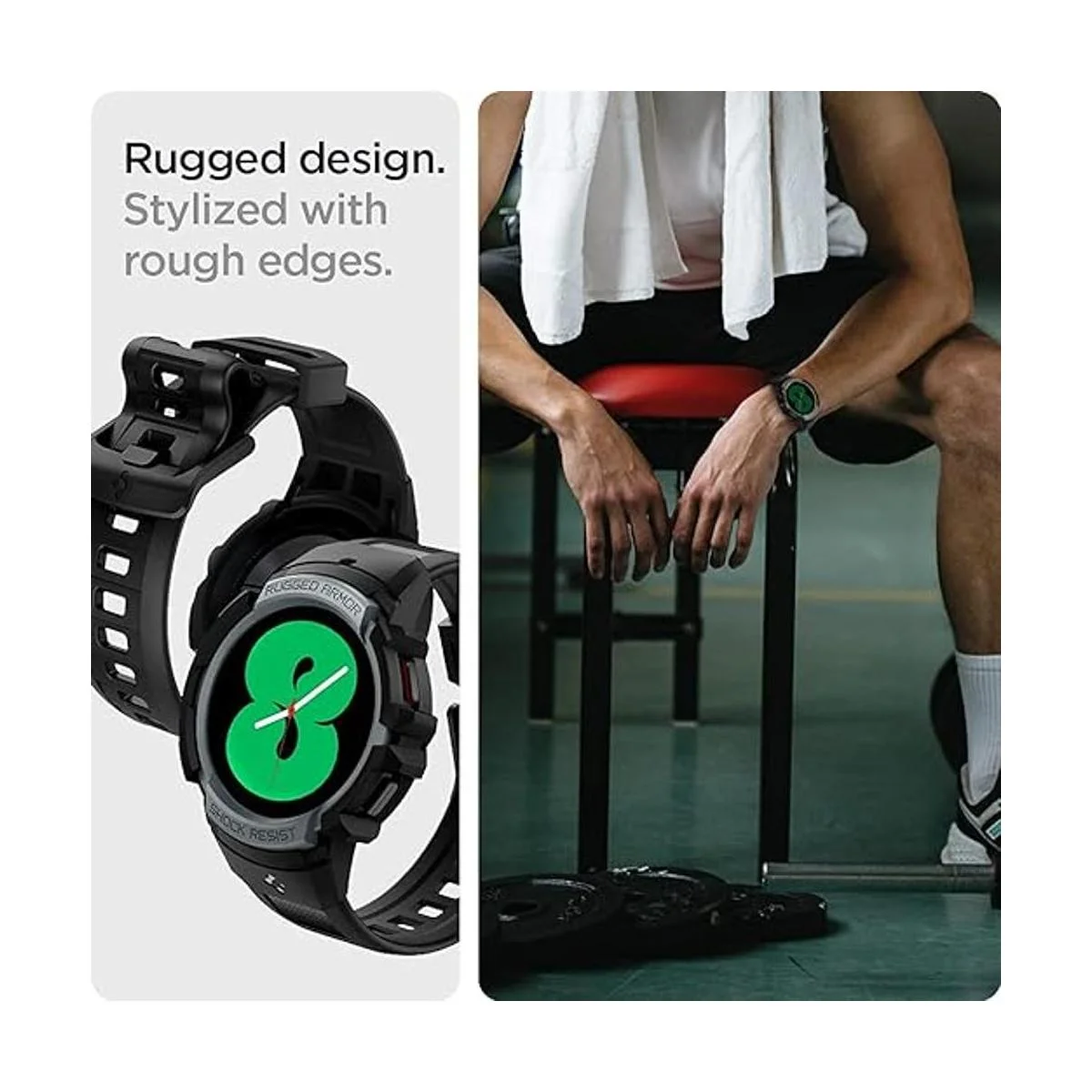 Spigen Rugged Armor Pro Correa diseñada para Samsung Galaxy Watch5, Galaxy Watch4 con protector de funda de 1.575 in 20222021, color gris carbón