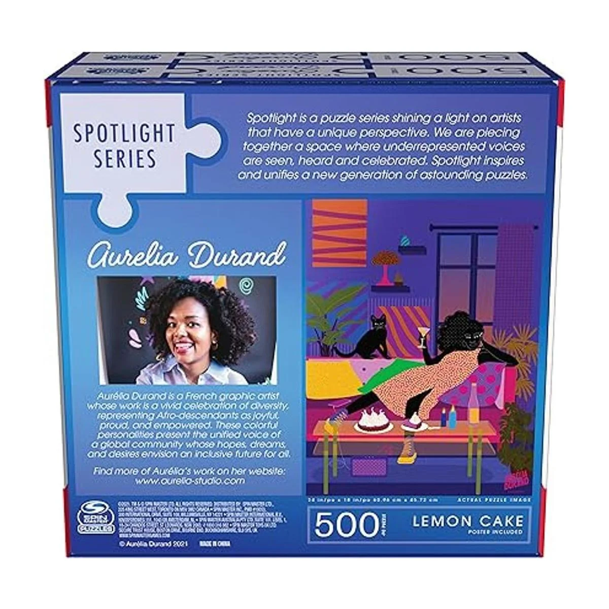 Colección Aurelia Durand: crea estos coloridos rompecabezas únicos titulados Cozy and Lemon Cake. Un artista gráfico francés, la obra de Durand es una celebración de la diversidad, representando a los afrodescendientes como alegres, orgullosos y empoderados.