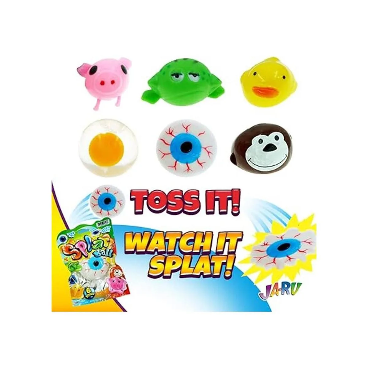 SPLAT Ball pegajosa y elástica paquete de 6 surtidos por JARU. Juguete sensorial para aliviar el estrés, relleno de piñata para recuerdo de fiesta. 53036p