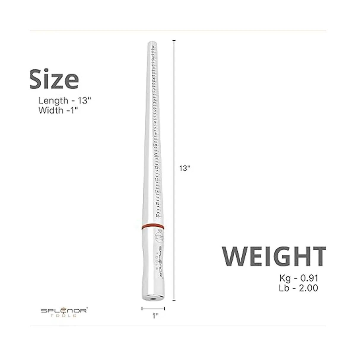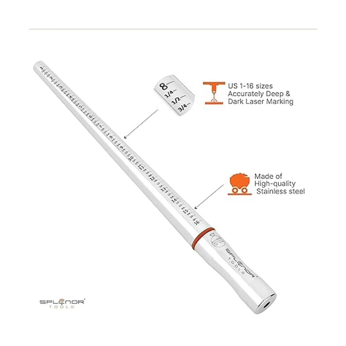 SPLENOR TOOLS Mandril de tamaño de anillo de acero inoxidable sólido de 13 pulgadas para medir y formar anillos, herramienta de fabricación y medición de joyas, tamaño de anillos sin ranura