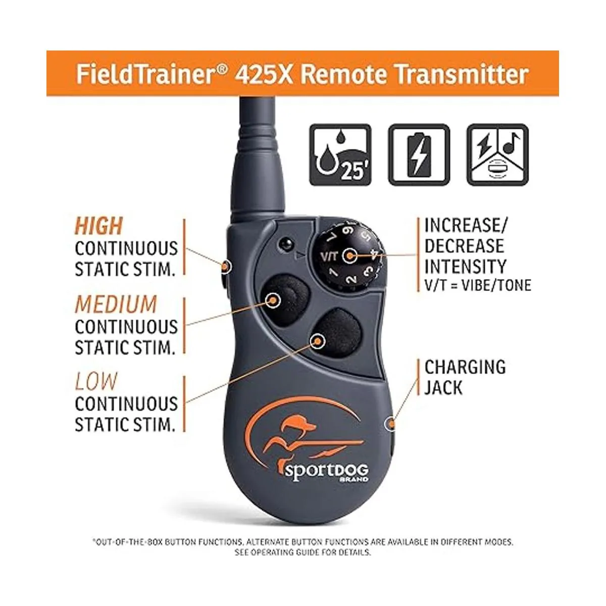 SportDOG Brand FieldTrainer Entrenador remoto 425X, collar de entrenamiento recargable para perros con impacto, vibración y tono, rango de 500 yardas, SD425X