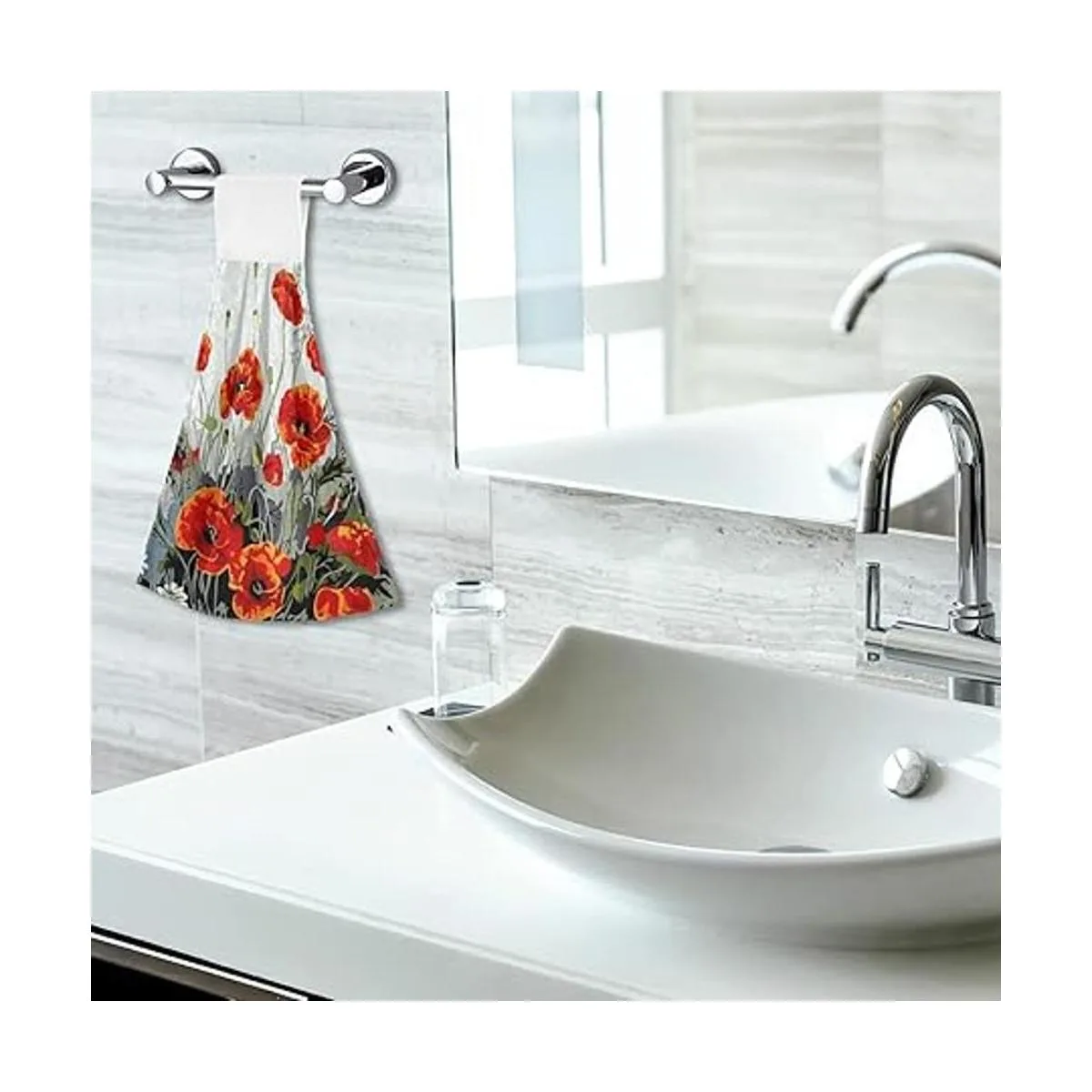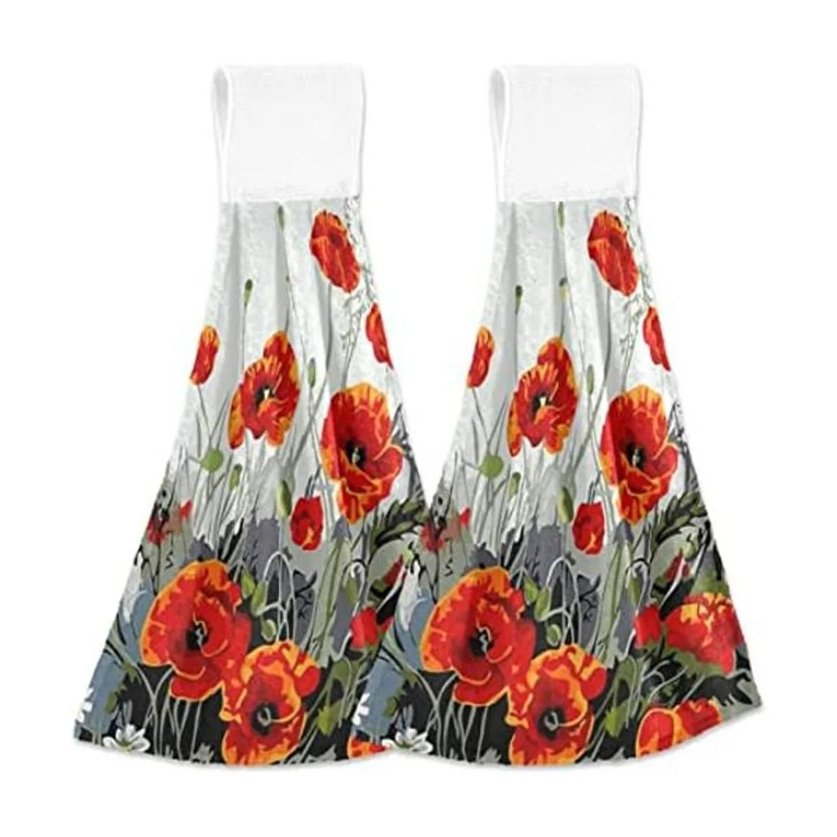 Spring Poppy Juego de 2 toallas de cocina colgantes con lazo, color rojo y negro floral, de secado rápido, suaves y vintage, paños de té para baño, casa de campo, decoración del hogar