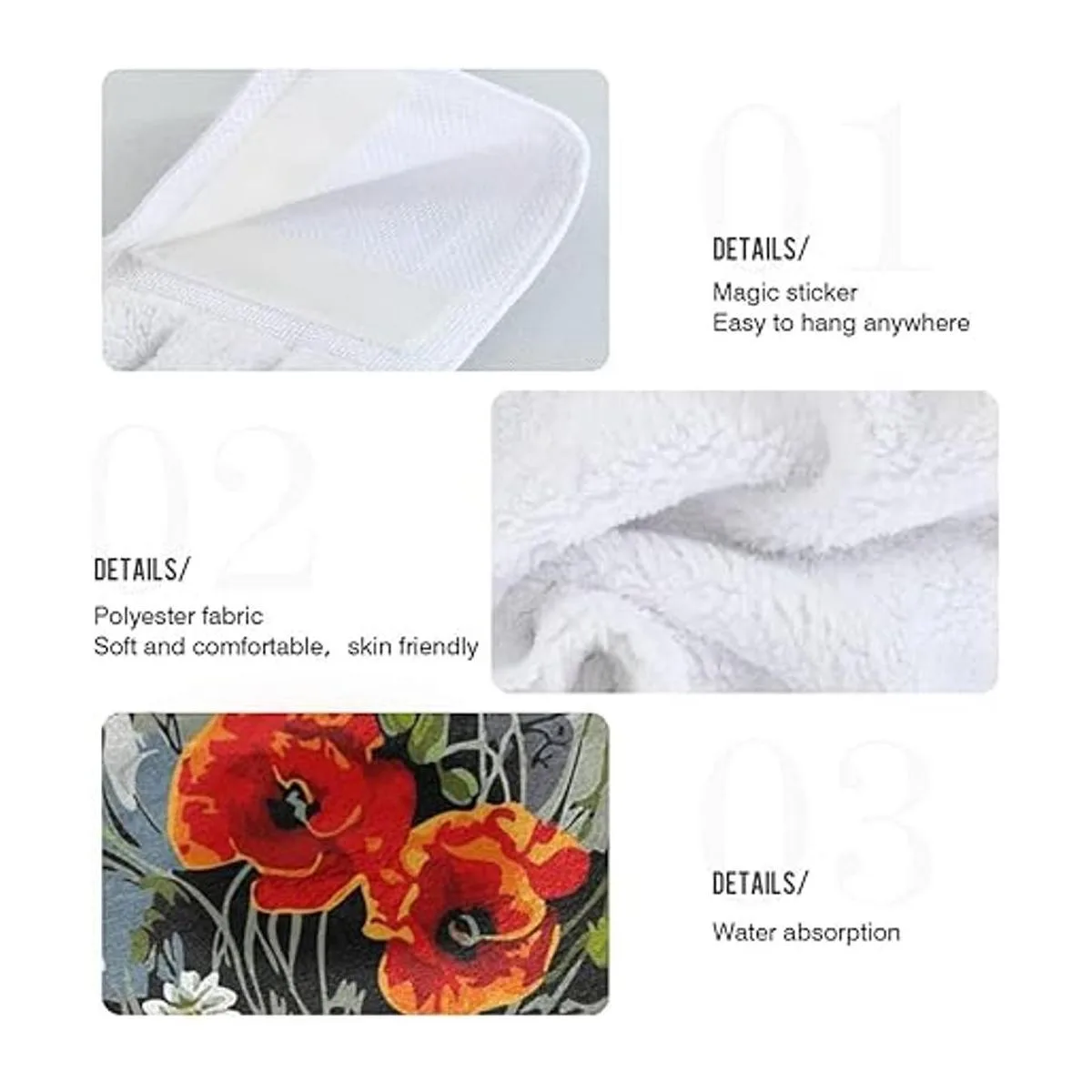Diseño superior: fácil de colgar y recoger y evita que los paños de cocina se deslicen en el suelo gracias al diseño de adhesivo mágico superior. Cómodo e higiénico, adecuado para eliminar las manchas de agua.