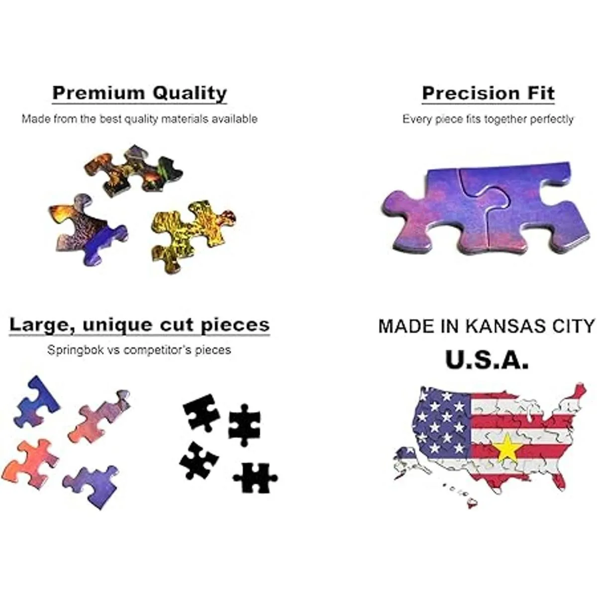 Piezas grandes de corte único: cada pieza del rompecabezas es única y nunca se repite; las piezas del rompecabezas Springbok están hechas de tablero grueso de 75 puntos, 18 más grueso que el promedio de la industria