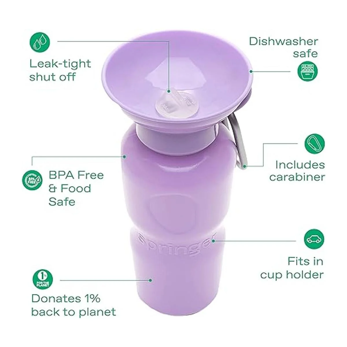 Hecho para mascotas sedientas: Springer, anteriormente Highwave, creó el dispensador de agua clásico para perros para cualquier aventura, ya sea caminando, senderismo o viajes por carretera. Nuestra botella de agua para mascotas de 22 onzas se puede utilizar fácilmente con una mano y evita desperdiciar agua.