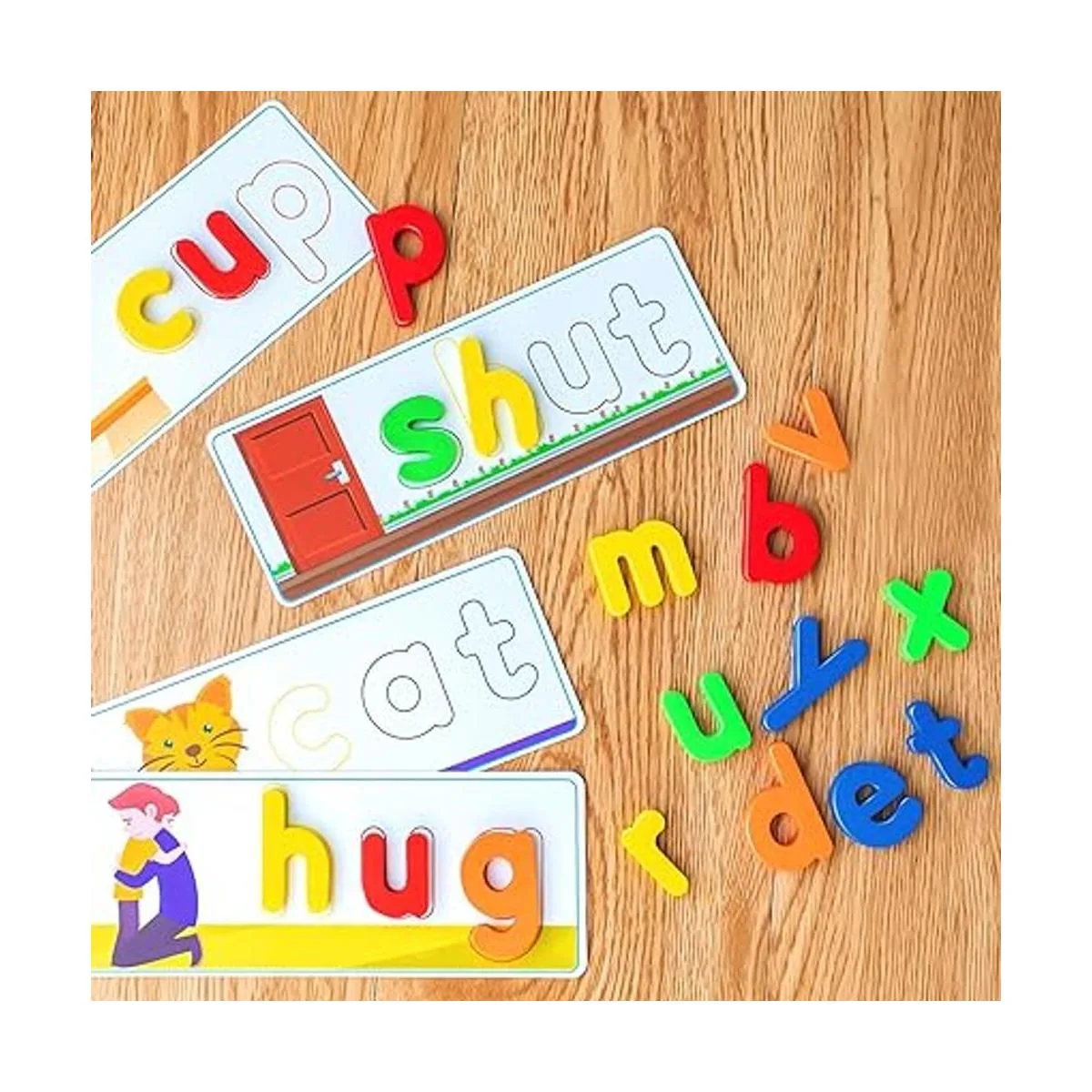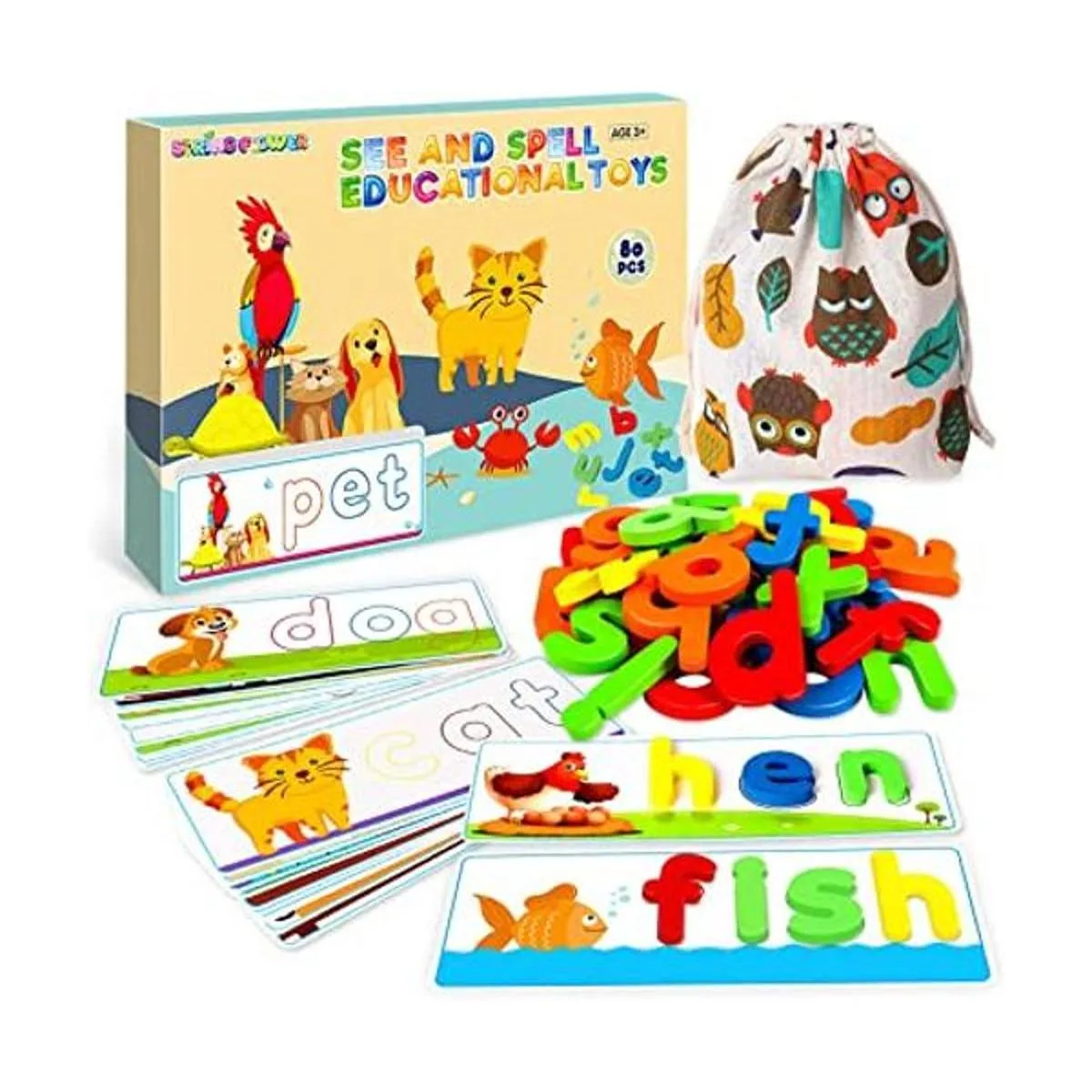 SpringFlower Juguete de letras a juego para ver y deletrear, juguete educativo de aprendizaje para niños y niñas de 3, 4, 5, 6 años, actividades de aprendizaje preescolar, juego de reconocimiento de formas y colores, constructores de palabras Cvc para niños, 80 piezas
