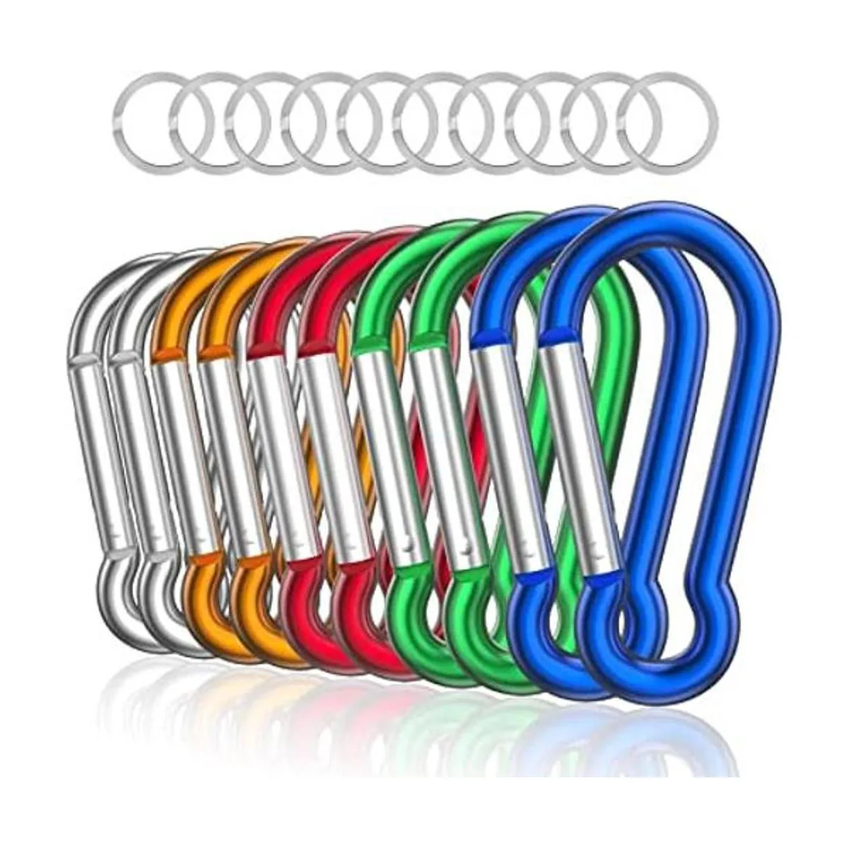 El producto incluye Clip de mosquetón de 3 pulgadas 10 piezas y anillos de acero de 1.181 in 10 unidades. Estos ganchos de aluminio en forma de calabaza son perfectos para mochila, llavero, cadenas, cuerdas, botella de agua, pasear al perro, camping, senderismo, pesca, mascotas, equipo de equipo de interior/exterior.