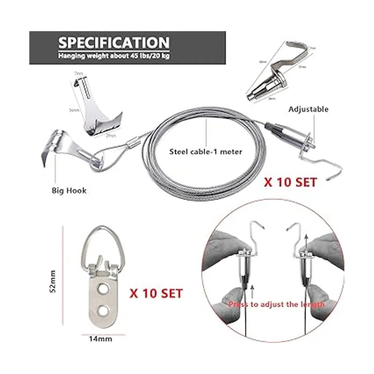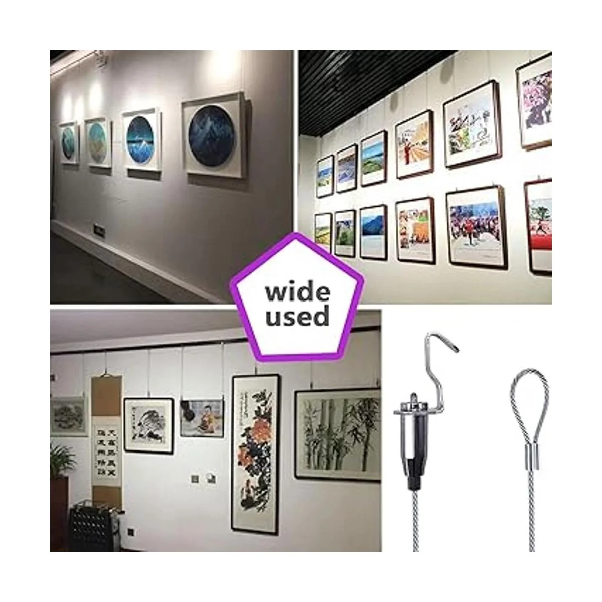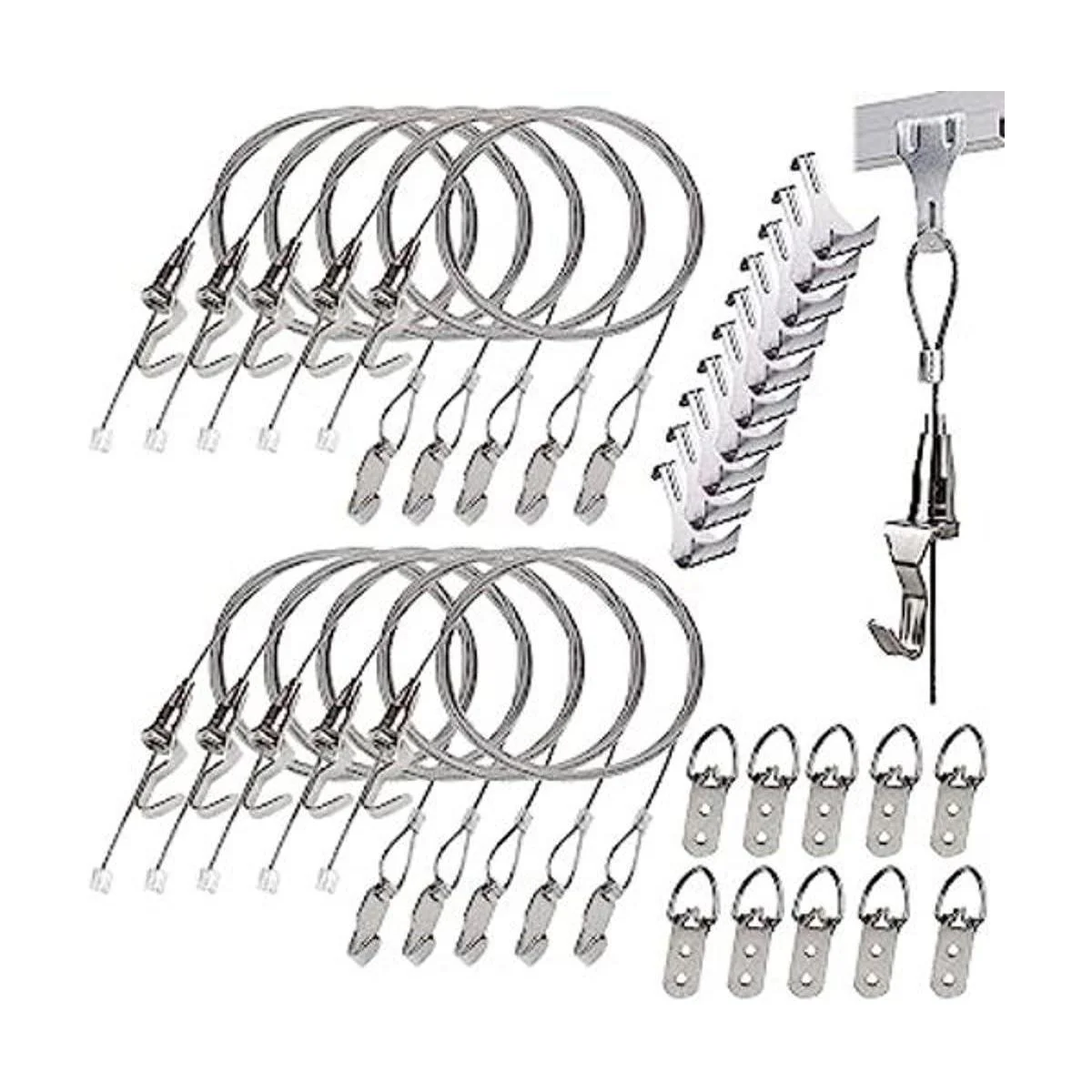 El kit de moldura de riel de cuadros incluye 10 ganchos de cada riel de acero, cable de alambre de acero inoxidable de 72.0 in más 6 ganchos ajustables