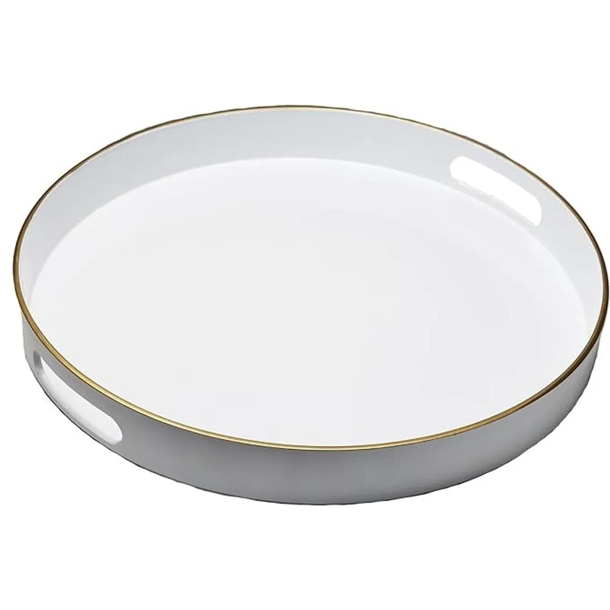 Spsyrine Bandeja decorativa redonda blanca, bandeja de mesa de servir de plástico de 13 pulgadas con asas para el desayuno, bandeja otomana redonda moderna para mesa auxiliar, baño, cocina, sala de estar