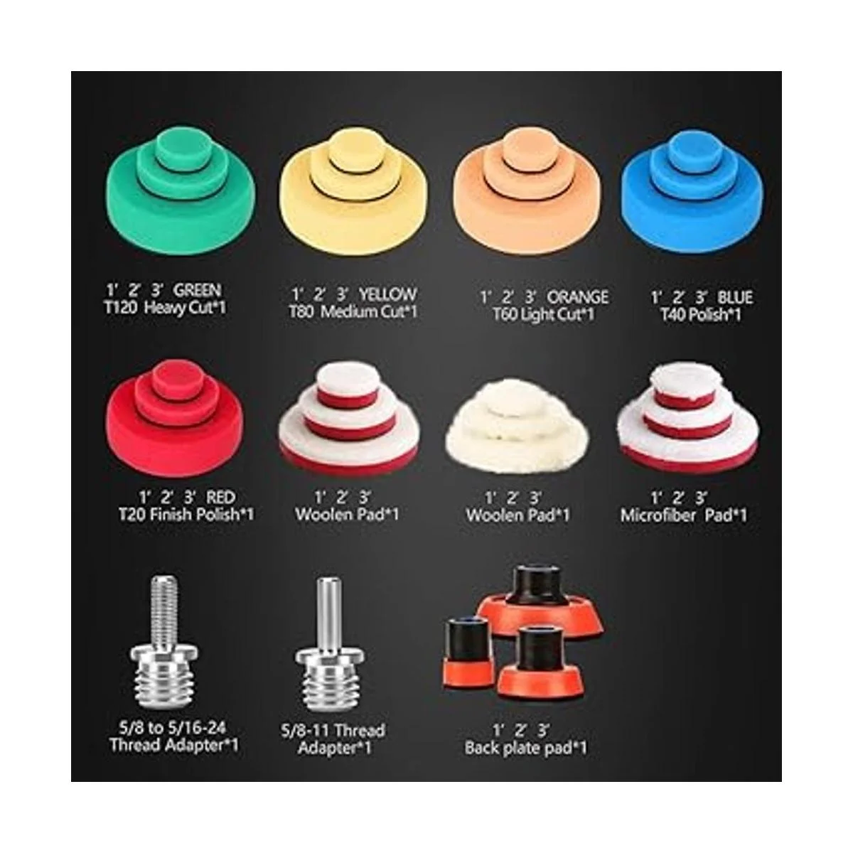 SPTA Juego de 29 almohadillas de pulido para pulir detalles con almohadilla de respaldo de rosca 5811 y adaptadores para lijado, pulido, encerado, sellado de esmalte