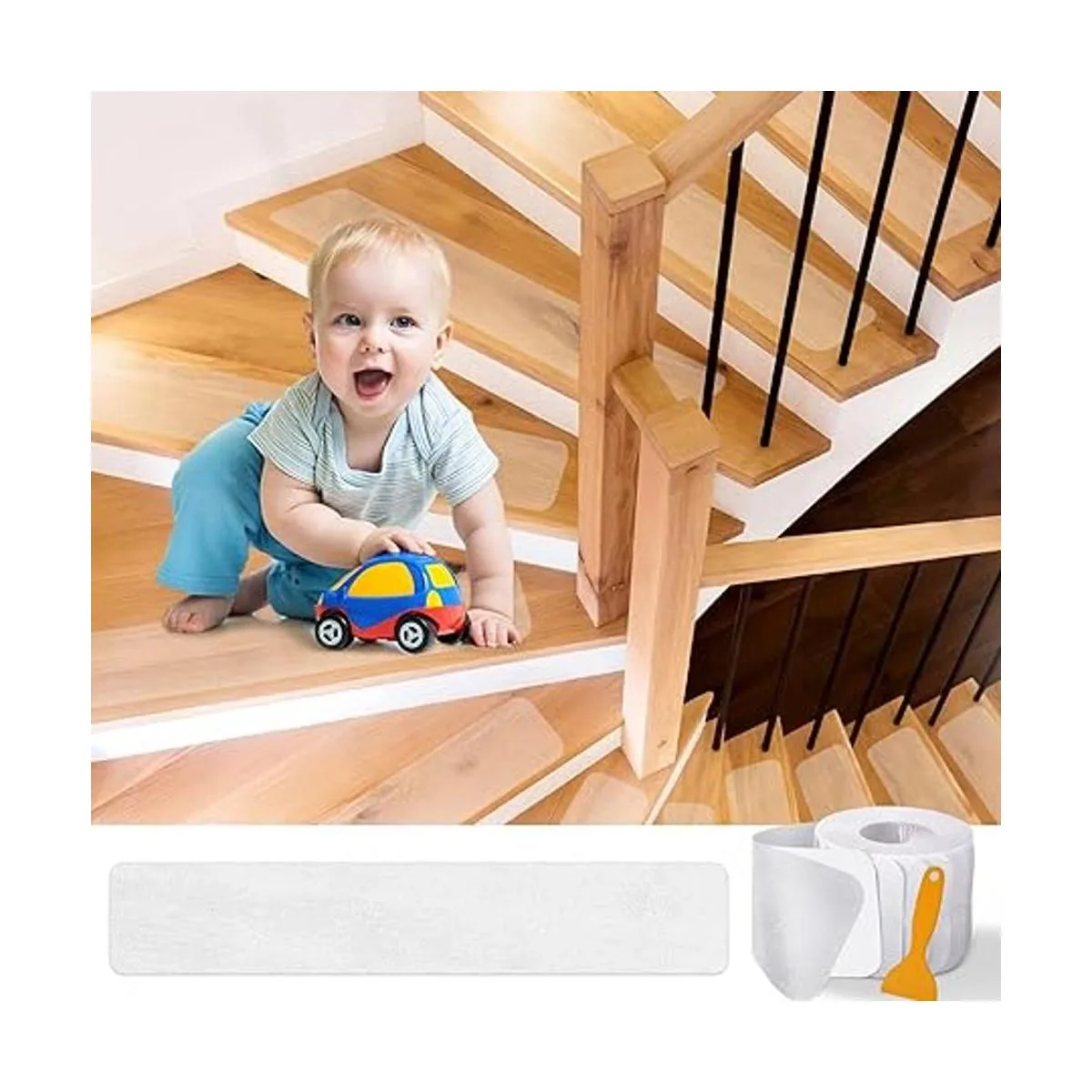 Spurtar Bandas de rodadura antideslizantes para escaleras, 4 x 24 pulgadas, paquete de 15 cintas de agarre transparente para escaleras, caminos de escalera para peldaños de madera, peldaños transparentes impermeables para peldaños de madera en interiores, agarres antideslizantes para perros