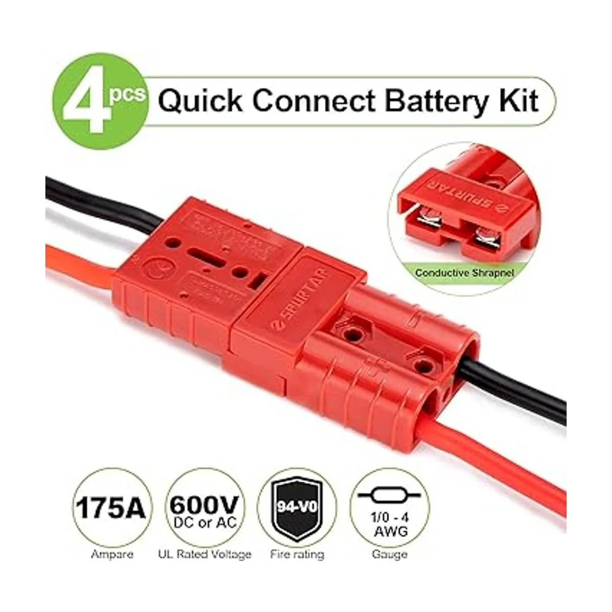 Spurtar Batería de 175 A, desconexión rápida, 4 conectores para cable de 104 AWG de 1236 V, kit de recuperación de cables de conexión rápida para automóvil, cuatrimotos, remolque, cabrestante de remolque y sistemas de conexión rápida, rojo