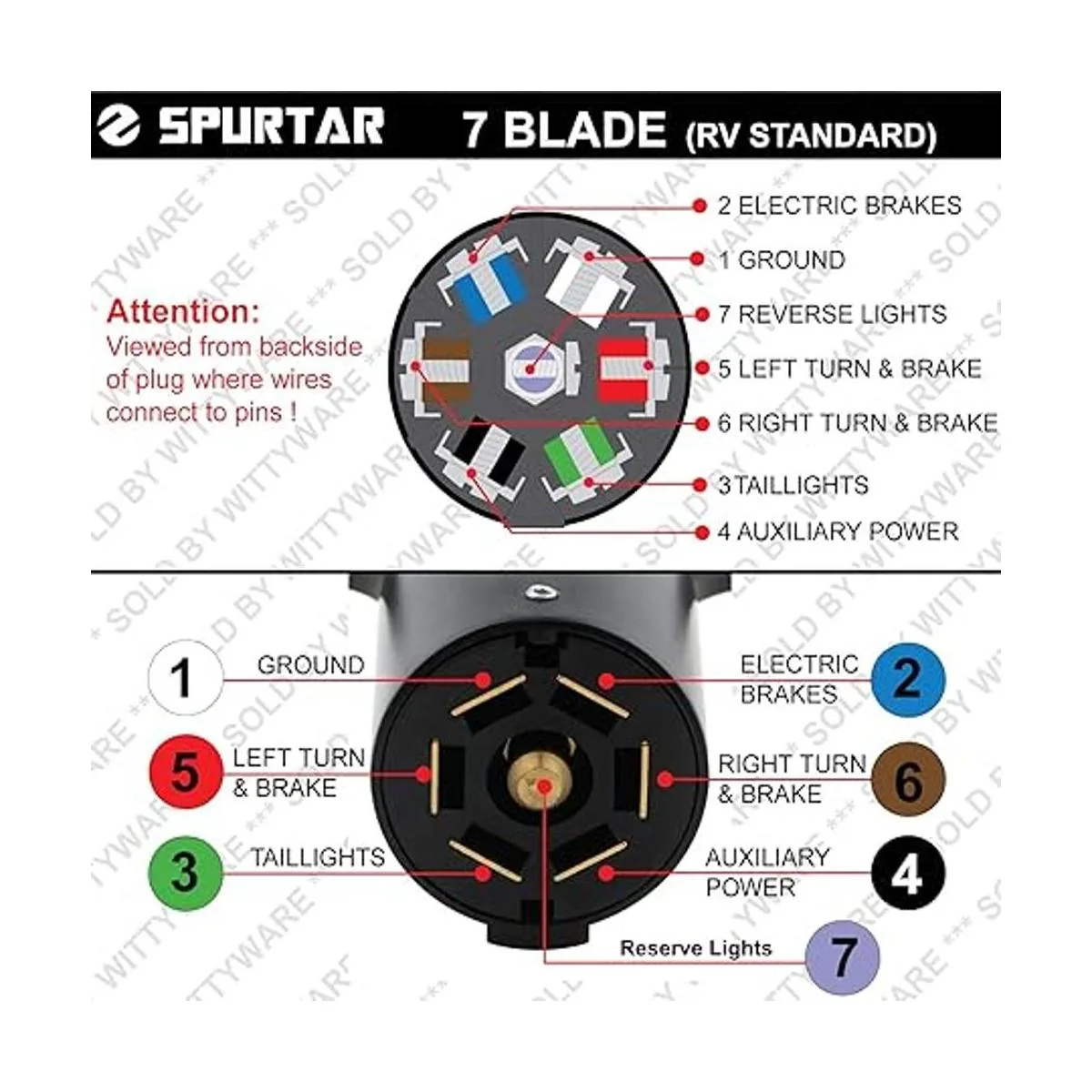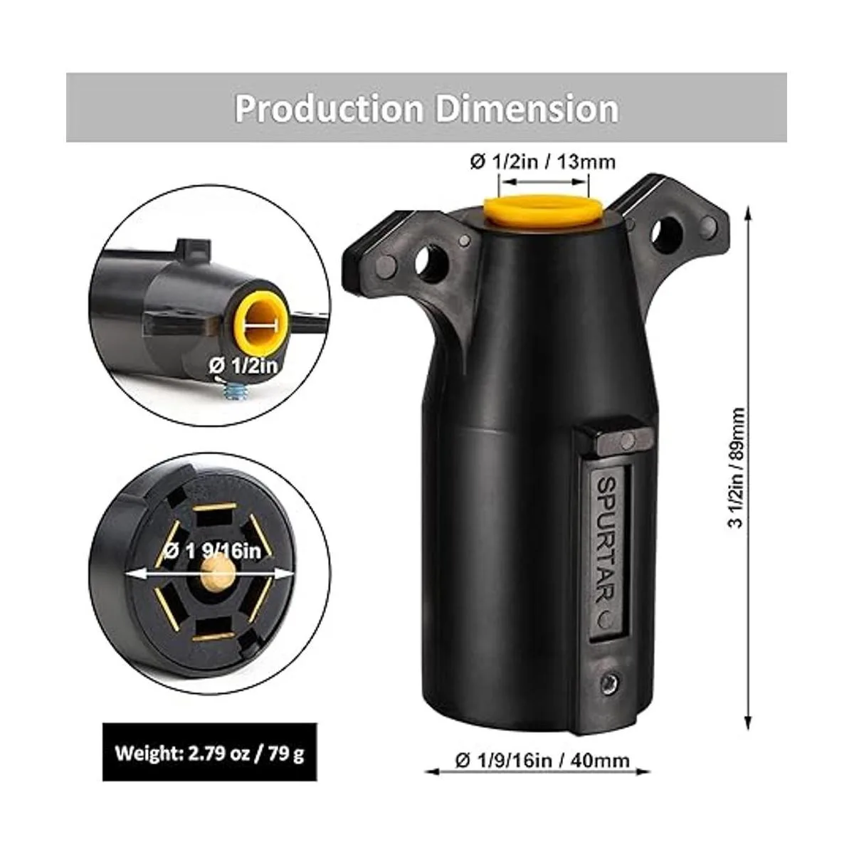Fiable: el enchufe de cableado de remolque Spurtar de 7 pines viene listo para empalmar en el cableado de tu remolque existente. Se puede utilizar para conectar las luces traseras, luces de freno, luces de marcha atrás, intermitentes, frenos de remolque y alimentación auxiliar