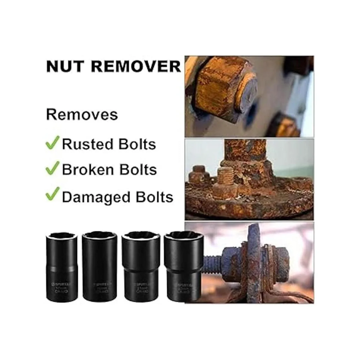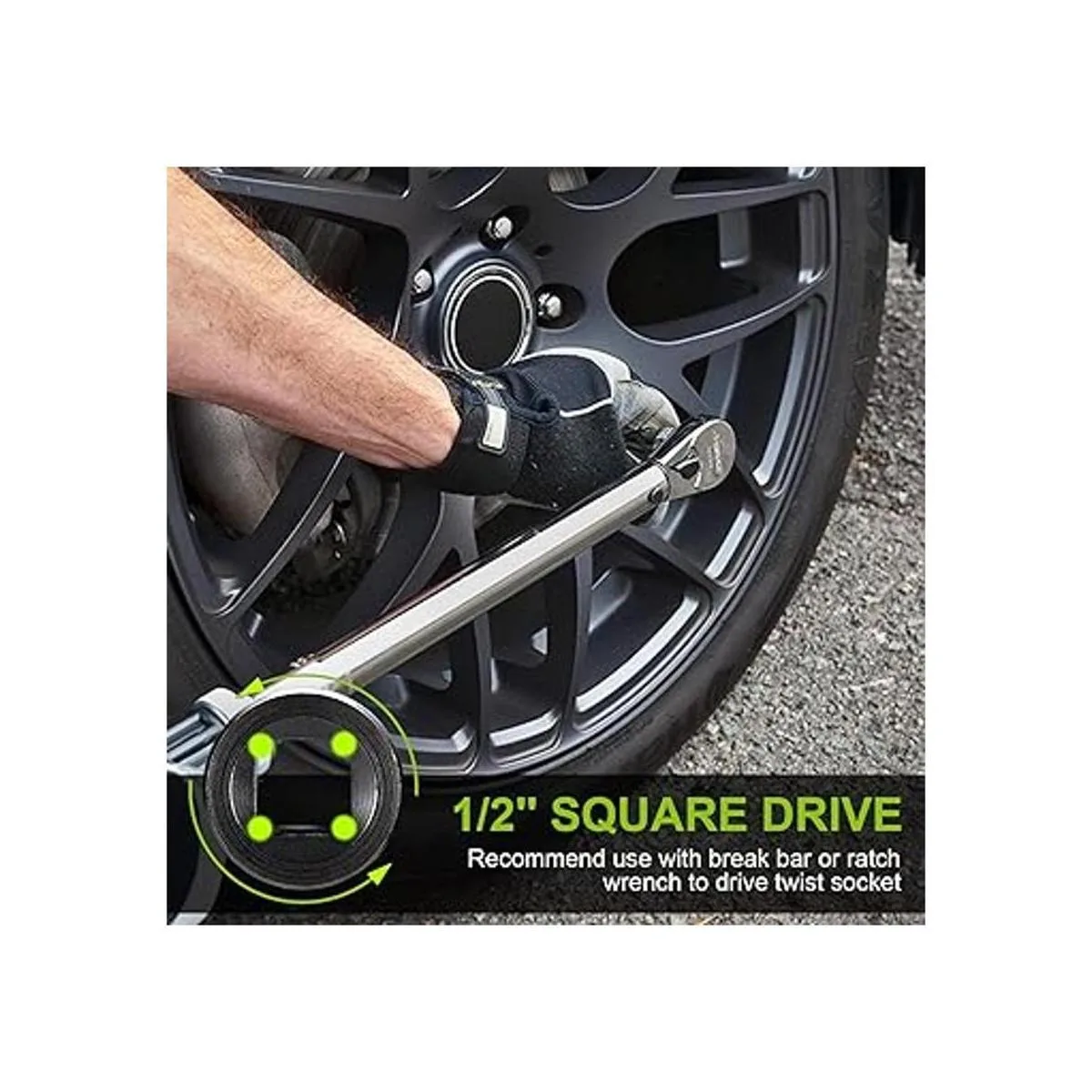 Herramienta de extracción de tuercas dañadas ideal: este removedor de tuercas se utiliza con trinquete de llave de mano cuadrada de 1/2 pulgada, barra rompedora no incluida. No compatible con llave eléctrica y todo tipo de herramientas de llave de impacto