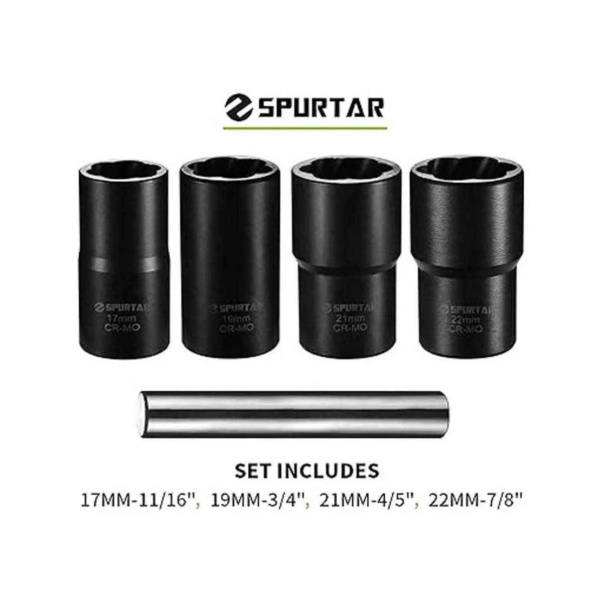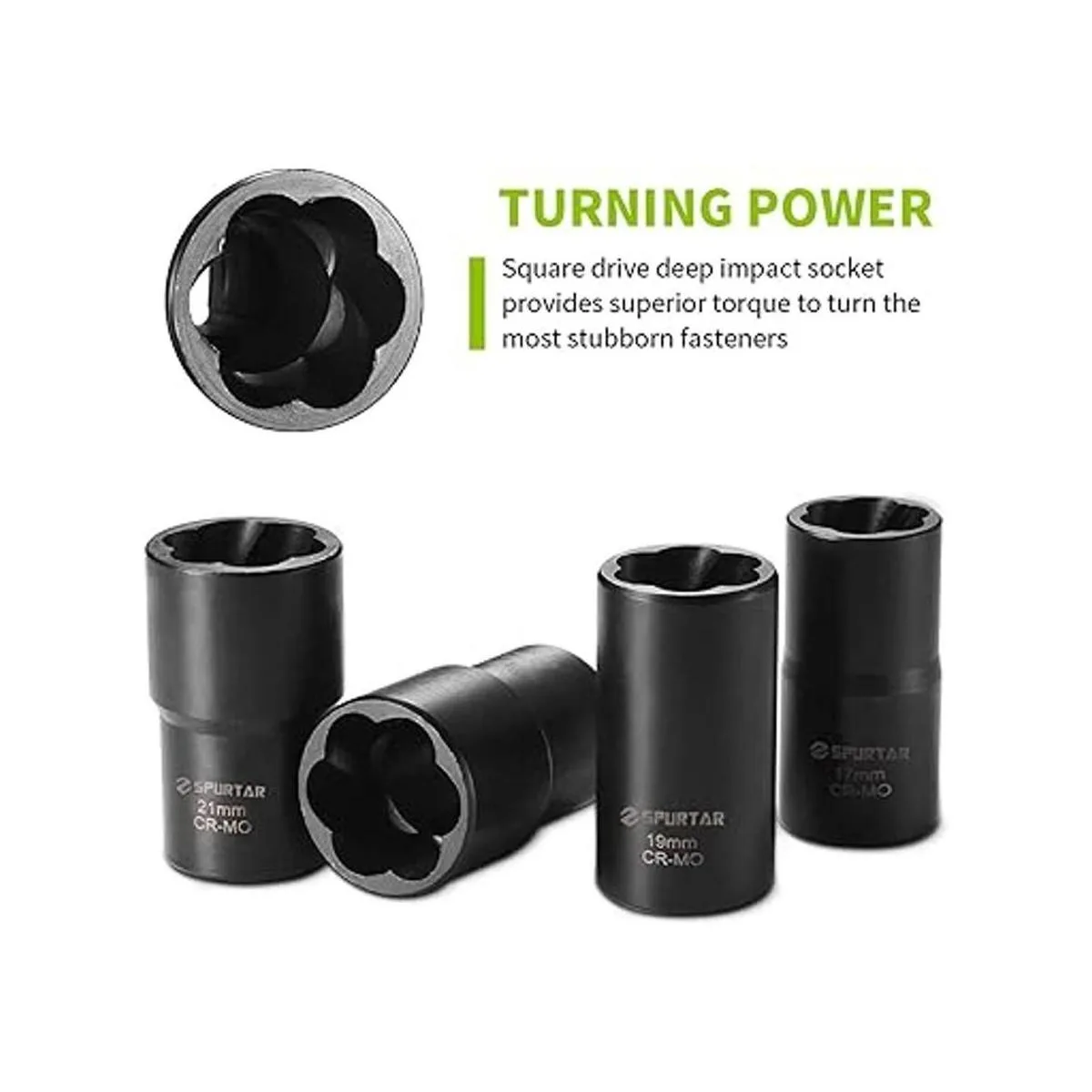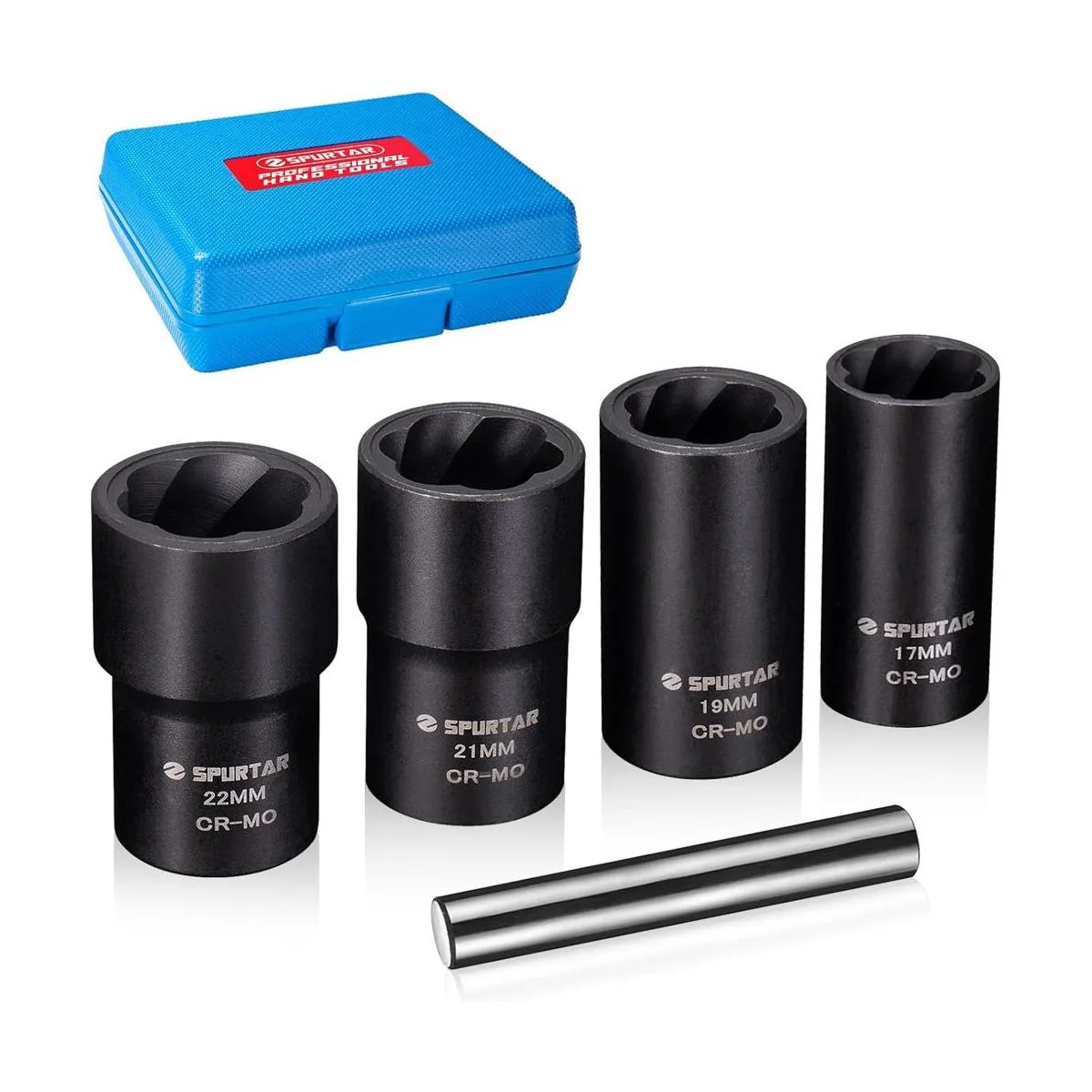Spurtar Juego de 5 piezas de tuercas giratorias, removedor de tuercas para quitar pernos, tuercas y tornillos dañados, muertos, oxidados, redondeados, 0.669 in, 0.748 in, 0.827 in, 0.866 in