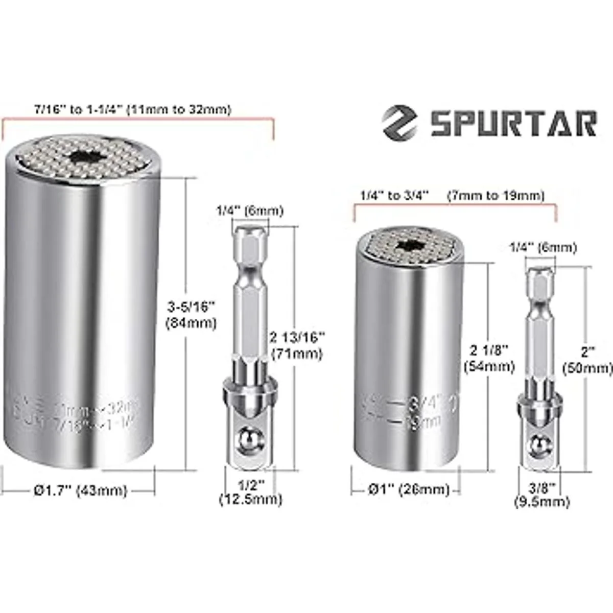 Profesional: el juego de enchufes universales Spurtar se adapta a tuercas de 0.2760.748 in y 0.4331.260 in 1/4 a 3/4 pulgadas y 7/16 pulgadas a 11/4 pulgadas, pernos y la mayoría de formas irregulares. Esta herramienta universal de reparación de enchufes se puede utilizar en la industria automotriz, mantenimiento del hogar, industria de fabricación, construcción