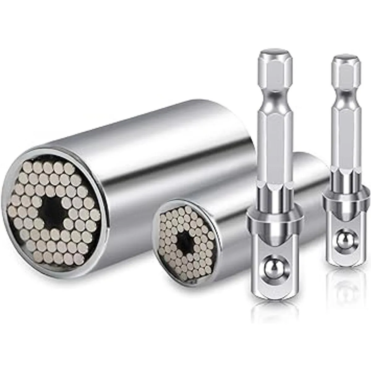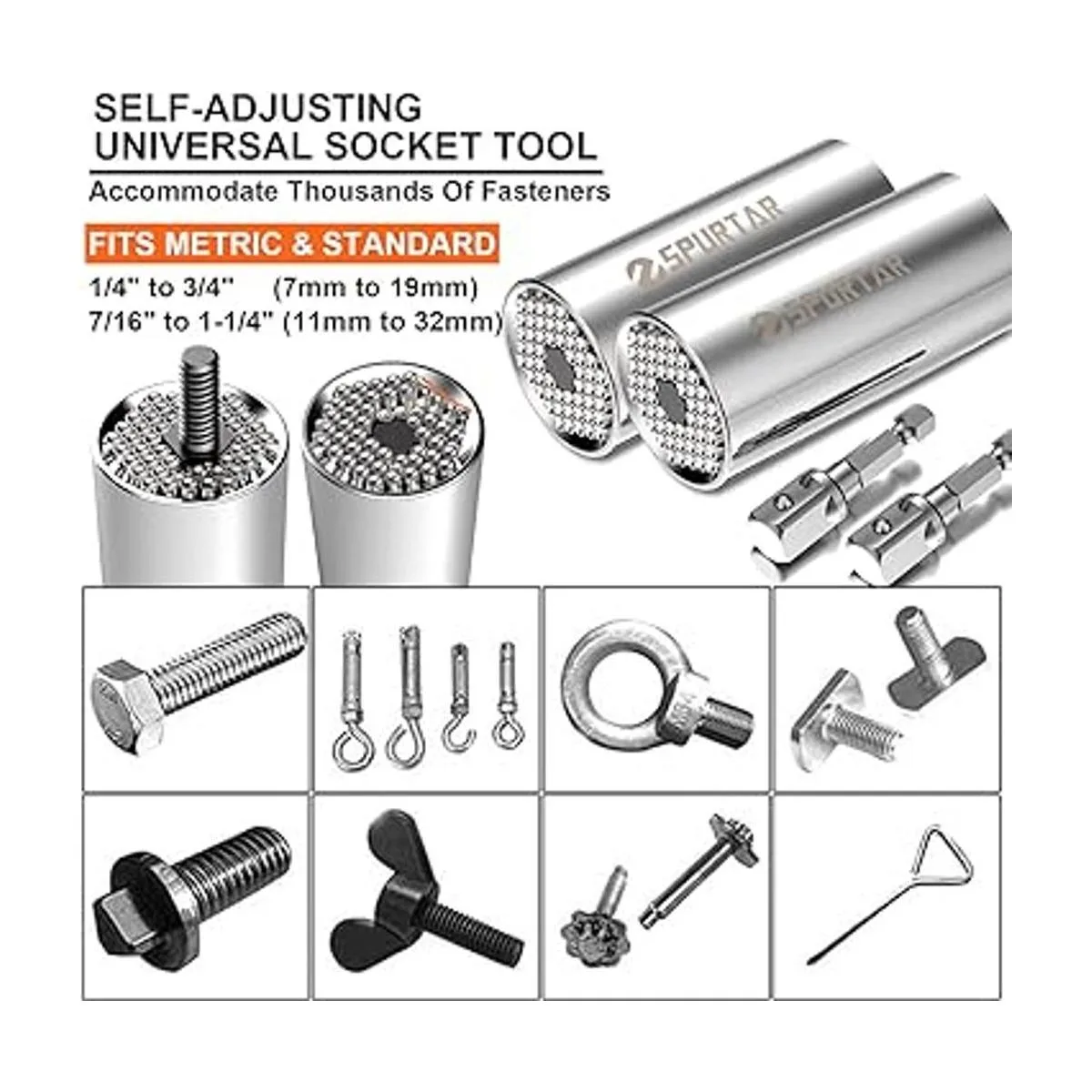 Prácticos juegos de enchufes: el enchufe universal tiene un diseño único que se ajusta automáticamente a cualquier tamaño o forma, agarra la tuerca hexagonal, tuercas de mariposa, ojo de tornillo, tornillos de retraso, gancho, tornillo de tensión y cabeza de perno, etc. Desatornilla cualquier perno, tuerca y otros sujetadores para los que no tengas la herramienta adecuada para