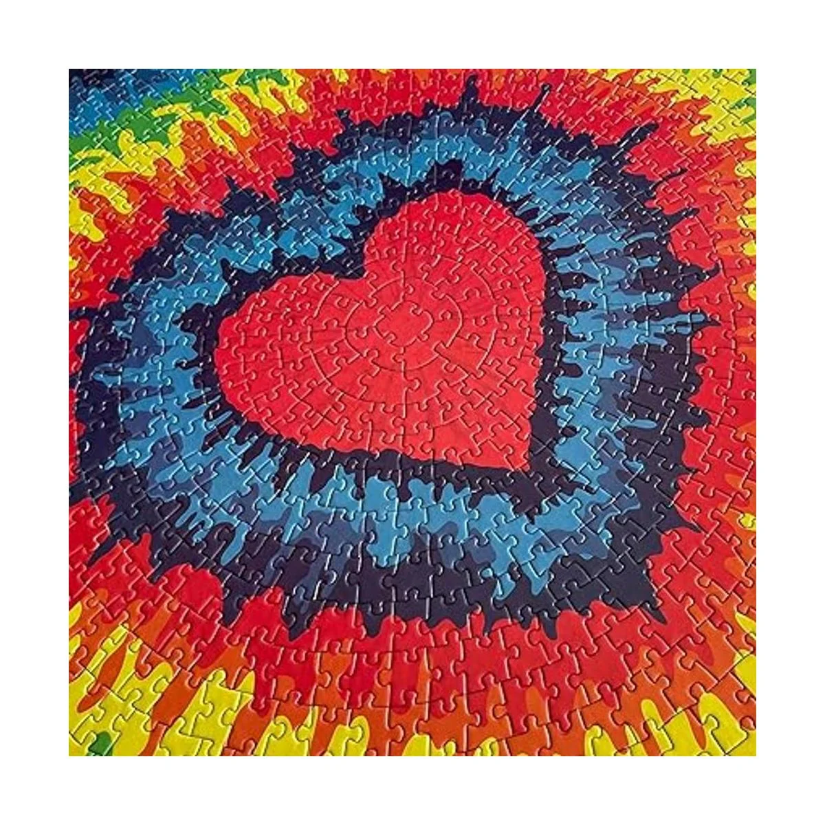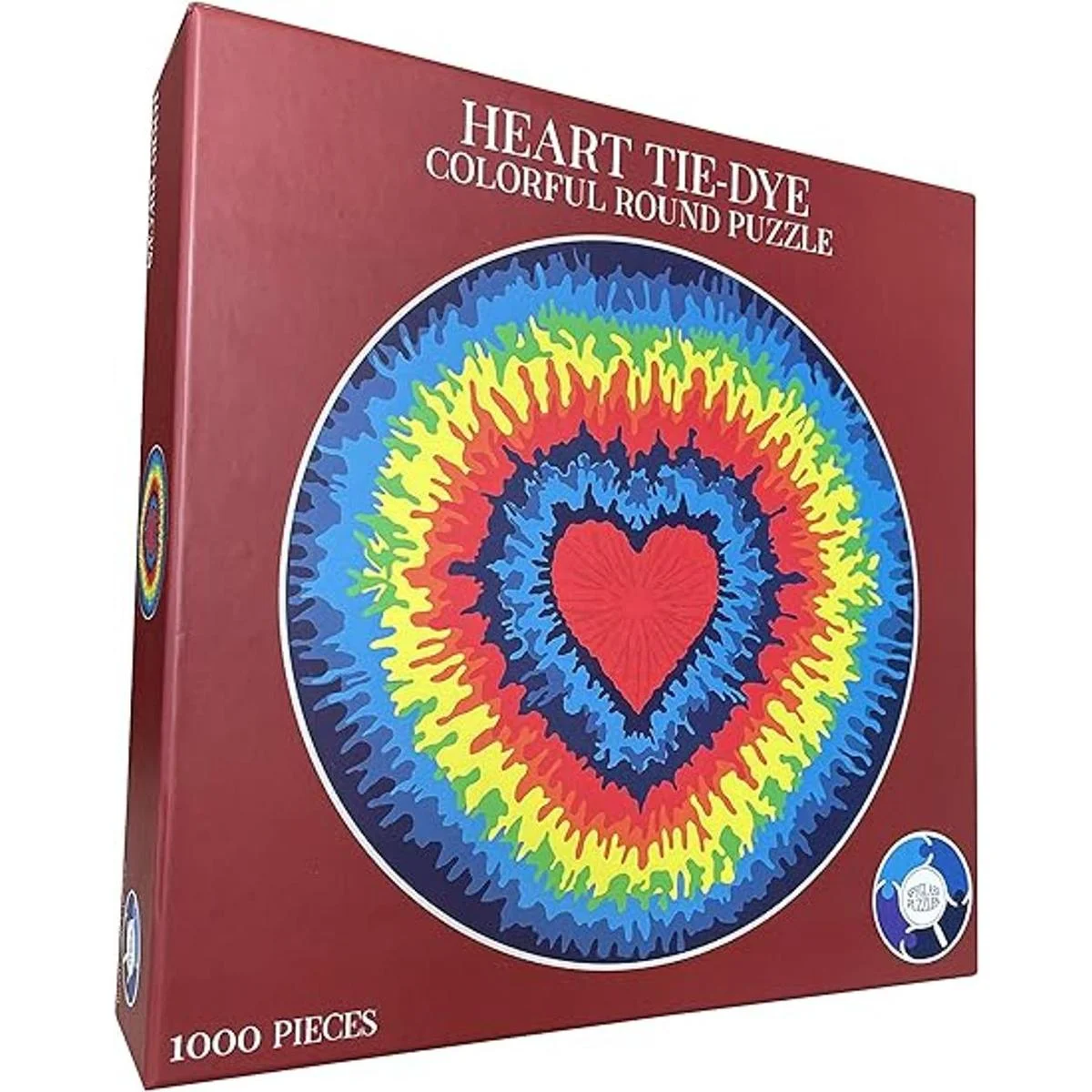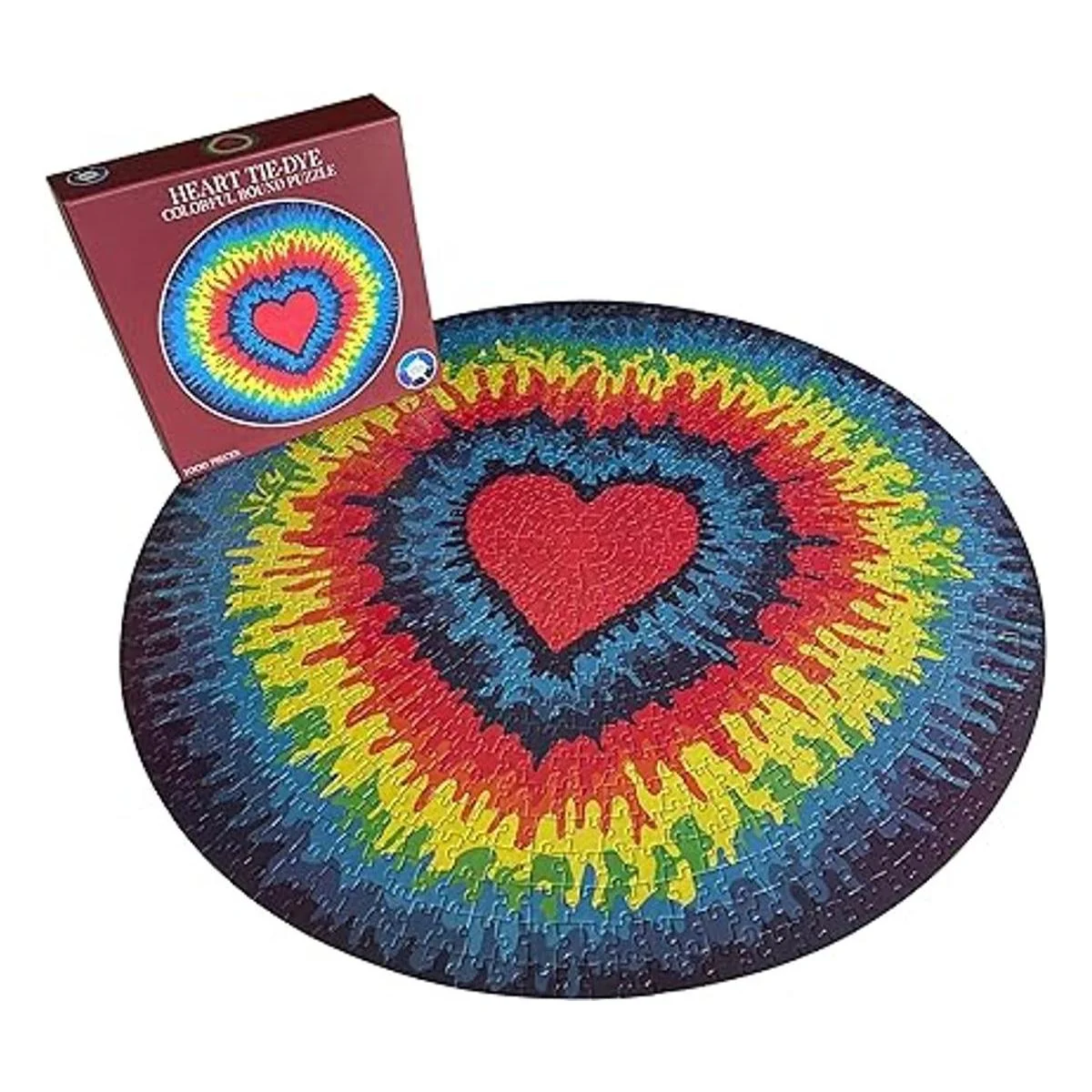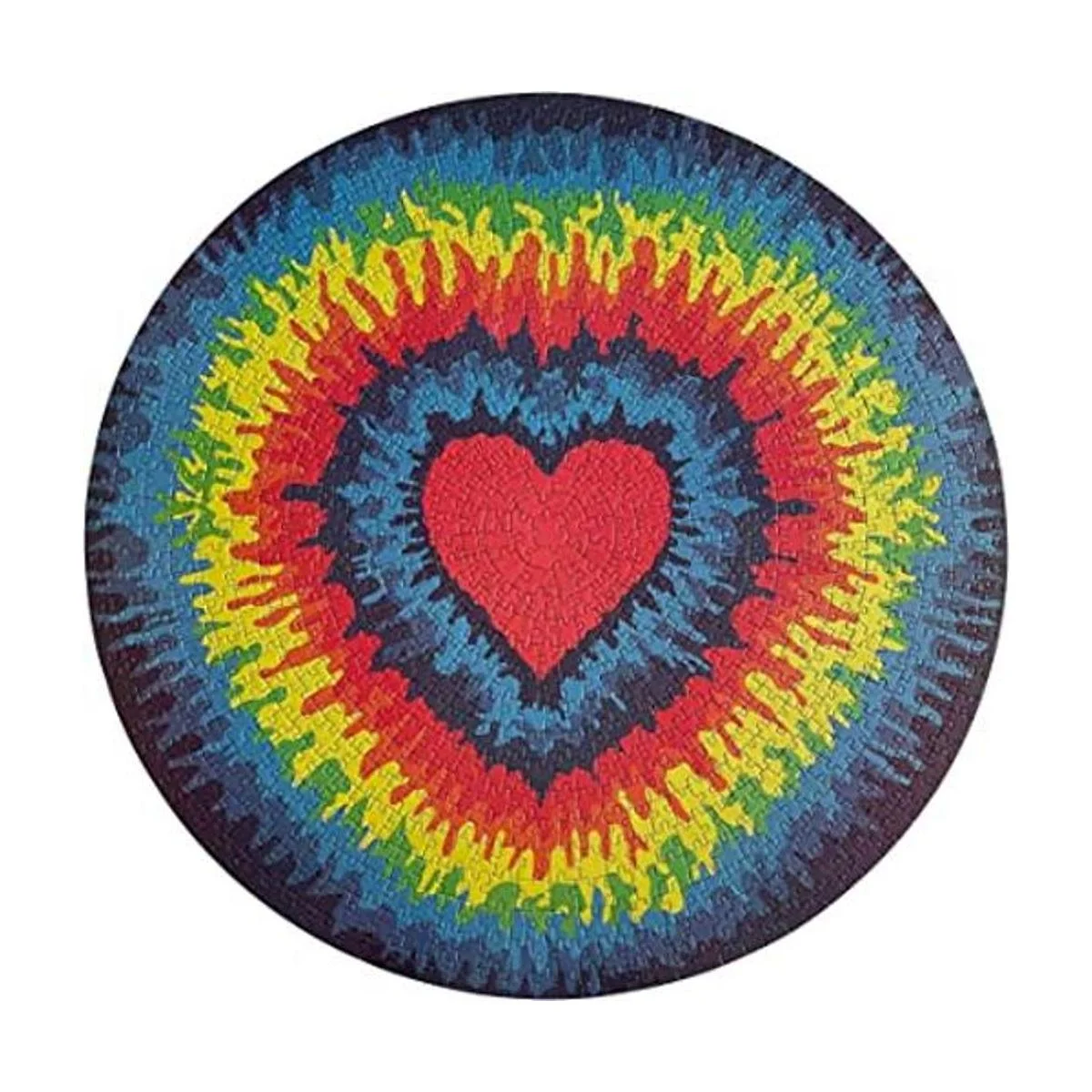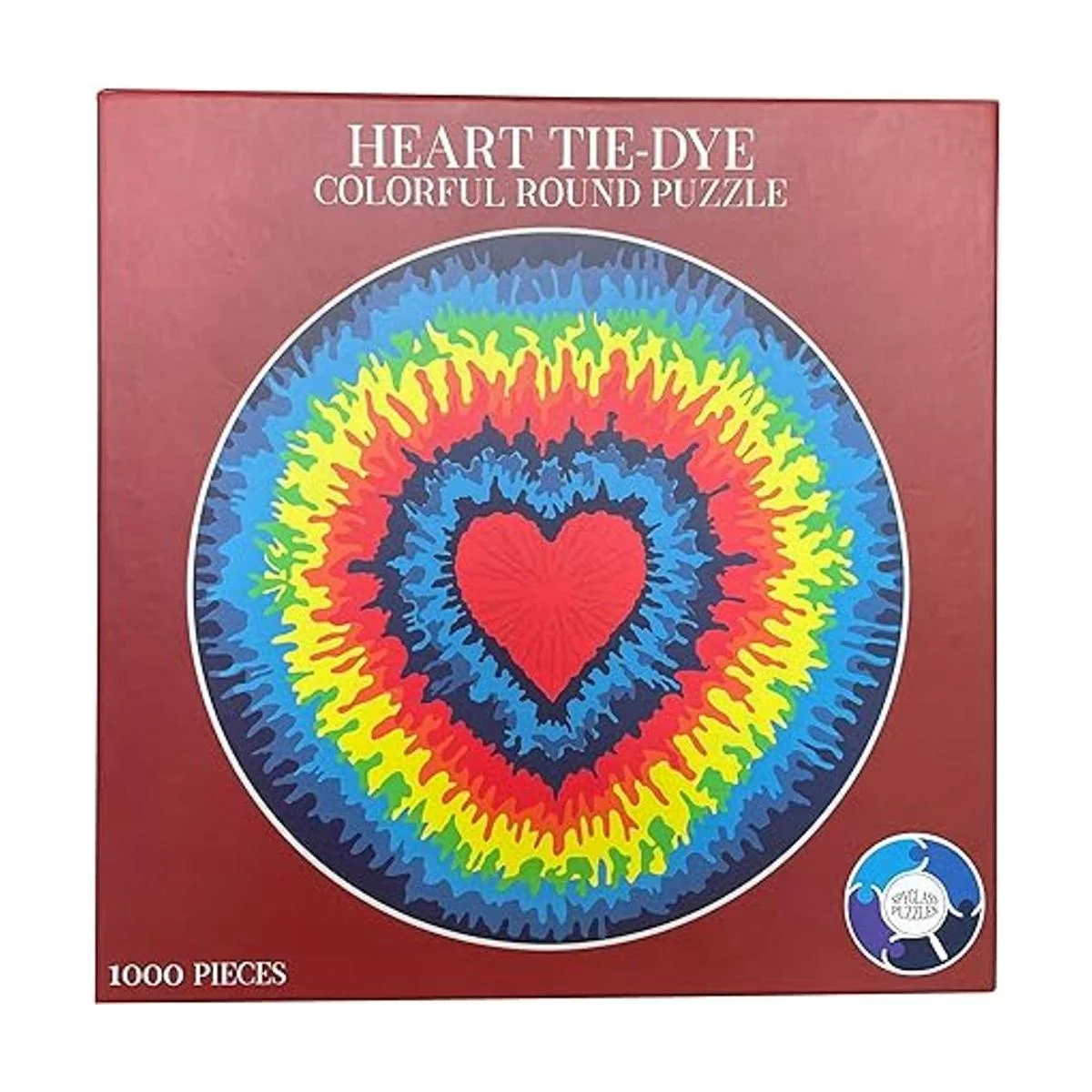 Spyglass Puzzles Rompecabezas de 1000 piezas para adultos y niños, rompecabezas redondos coloridos de arcoíris para adultos, rompecabezas difíciles casi imposibles, corazón retro de teñido anudado