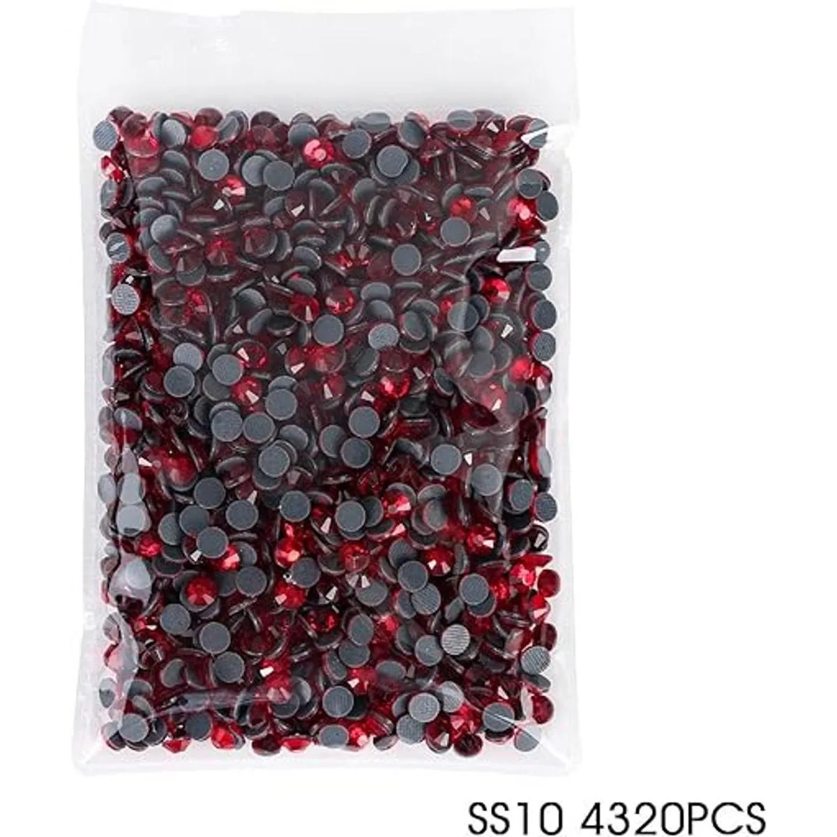 SS10 Diamantes de imitación termoadhesivos color rojo, cristal pequeño a granel para bricolaje, ropa, camisas, zapatos, decoración con purpurina, regalos de espalda plana redonda 0.110 in, 4320 unidades