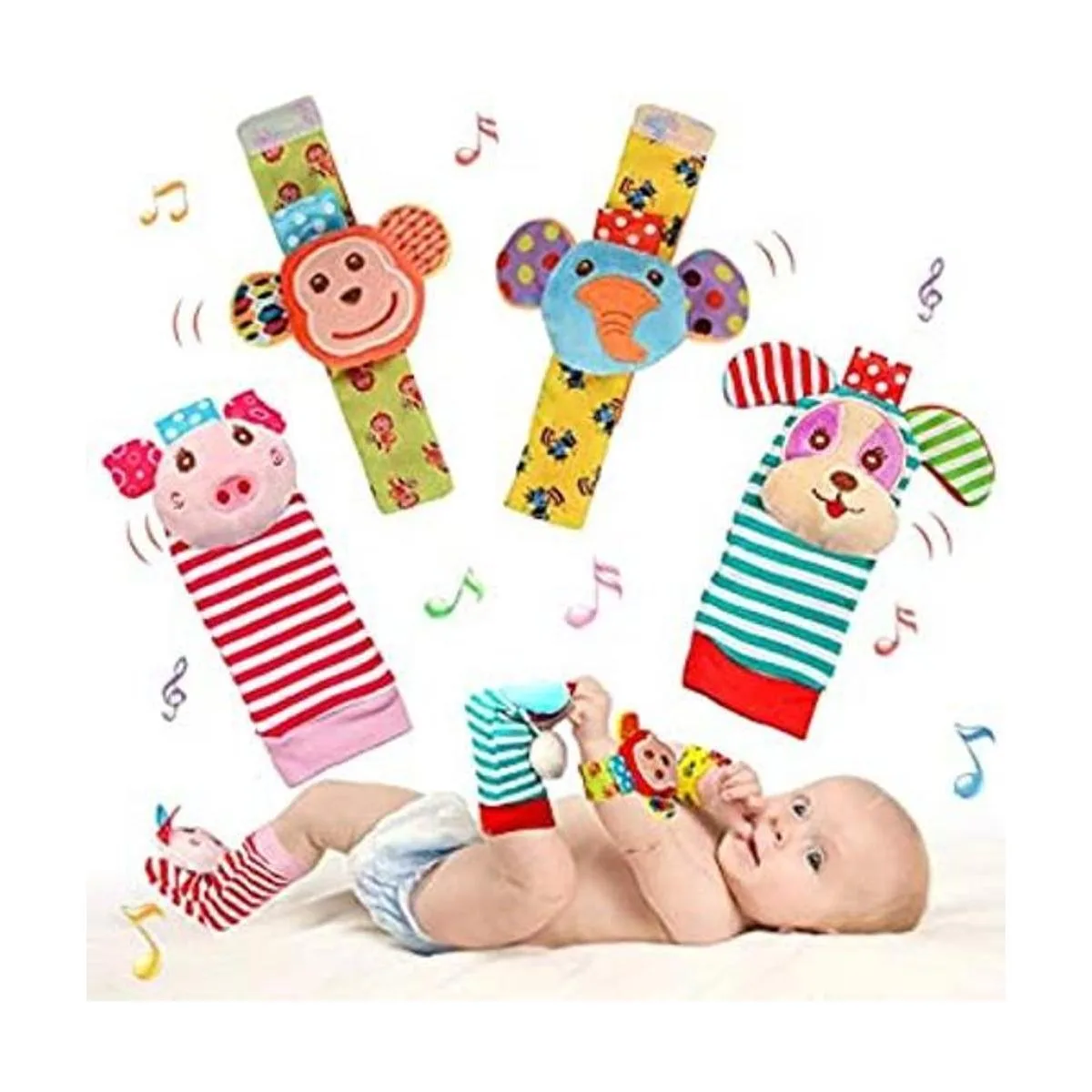 SSK Juego de calcetines suaves para bebé con sonajero de muñeca para bebé, juguetes de algodón y peluche, regalo de nacimiento para recién nacidos de 03467891218 meses, 4 animales lindos