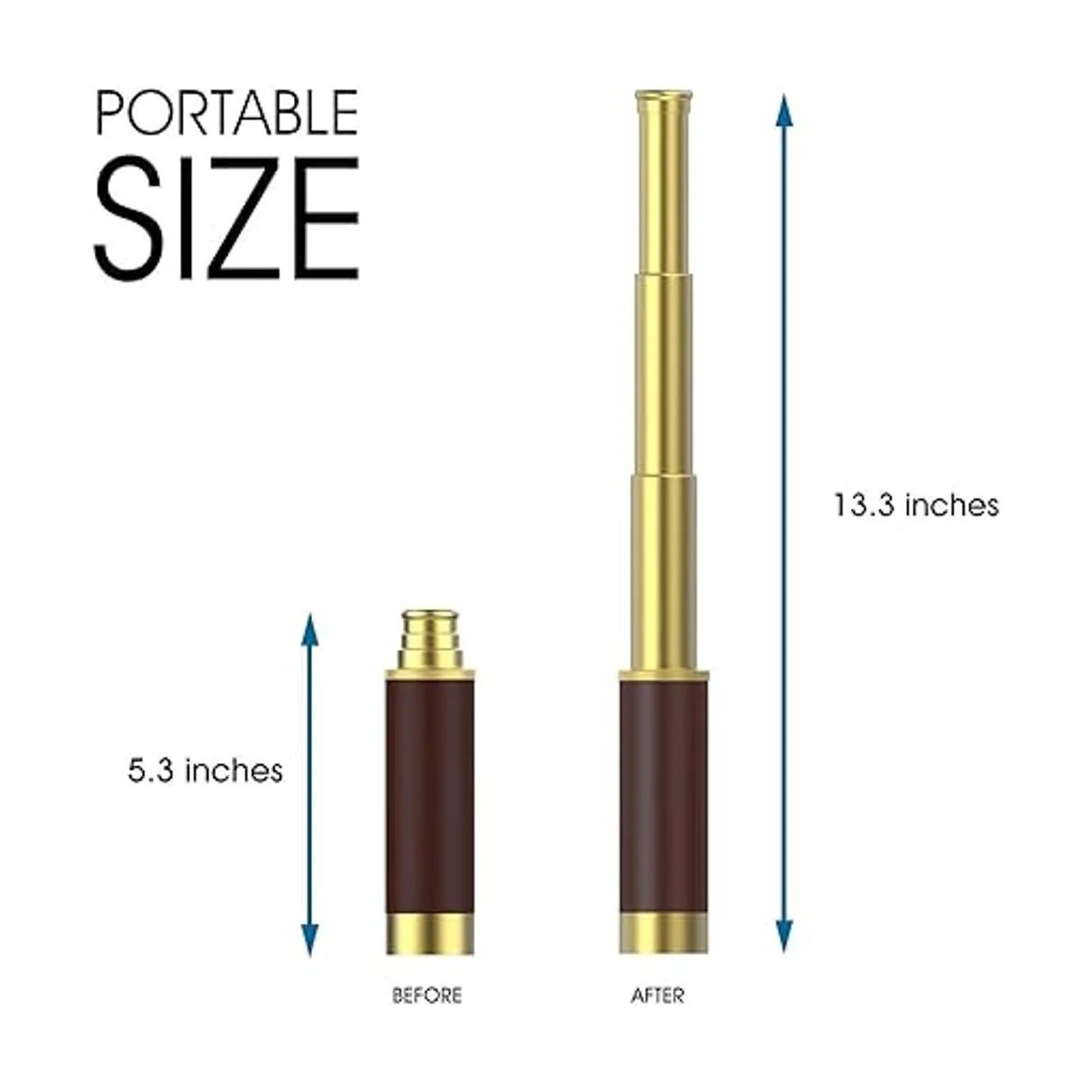 Monocular portátil y plegable: el telescopio de bolsillo tiene un tamaño mini, diseño telescópico. Y es ligero y fácil de llevar, te permite llevar el telescopio de latón pirata contigo a cualquier lugar que vayas, nunca te pierdas ninguna vista importante o espectacular.