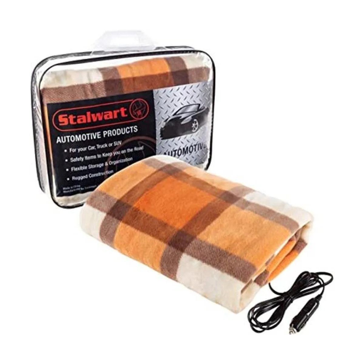 Stalwart 75BP1011 Manta eléctrica de 12 V de forro polar de viaje para automóvil, camión y autocaravana, para clima frío, kit de estacionamiento trasero y emergencia (naranja)