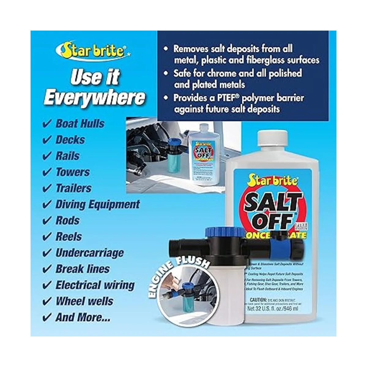 STAR BRITE Sal Elimina los depósitos de sal y deja un revestimiento protector de PTEF, también es ideal para despejar motores fuera de borda e interior con aplicador mezclador
