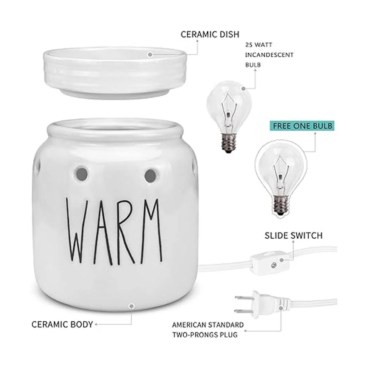 STAR MOON Rae Dunn Calentador de cera fundida para Rae Dunn Decor Calentador de cera con plato extraíble, una bombilla más, fragancia para el hogar, decoración del hogar, blanco brillante verruga