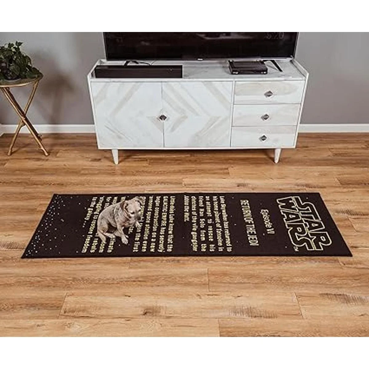 Star Wars Alfombra de área impresa del regreso de los Jedi Title Crawl Tapete de piso interior, alfombras decorativas para sala de estar y dormitorio, decoración del hogar para sala de juegos de niños, regalos de películas y coleccionables, 27 x 77 pulgadas