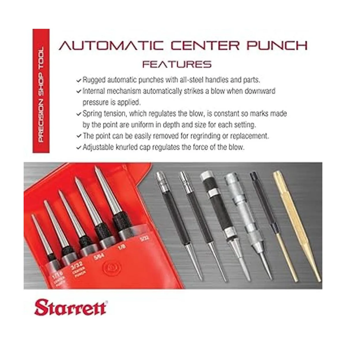 Starrett 18AA, Perforadora para centro de carga pesada con toque o golpe ajustable, longitud 514, diámetro 1116