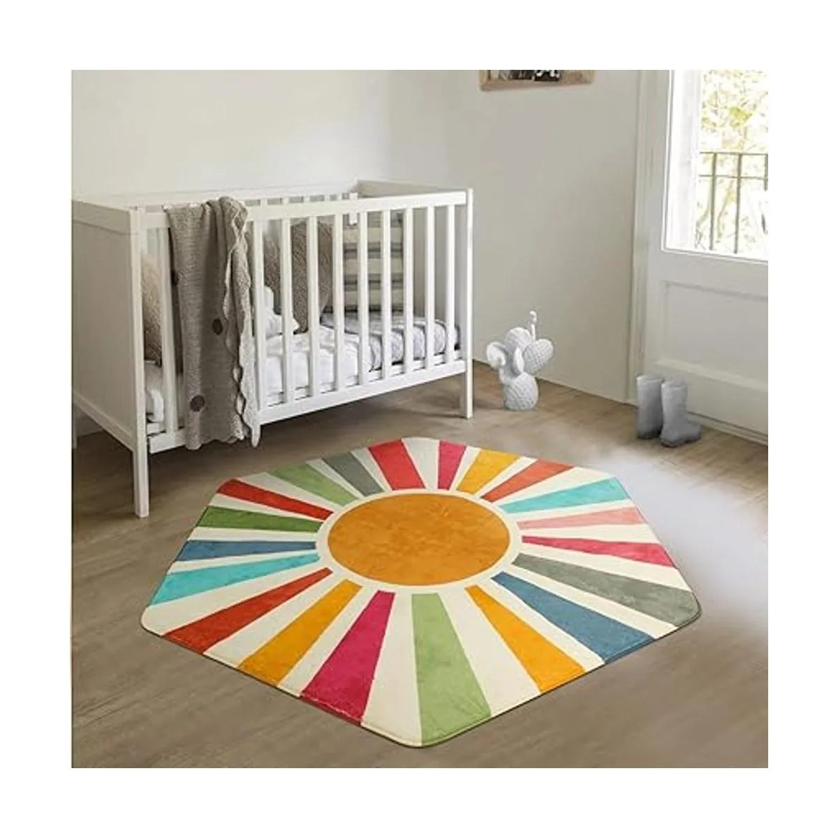 STARUIA Alfombra retro estilo bohemio para dormitorio, 4 x 4 pies 7 pulgadas, hexagonal, lavable, colorida alfombra para niños, habitación del bebé, alfombra ultra suave antideslizante, alfombra interior para aula, sala de estar, entrada