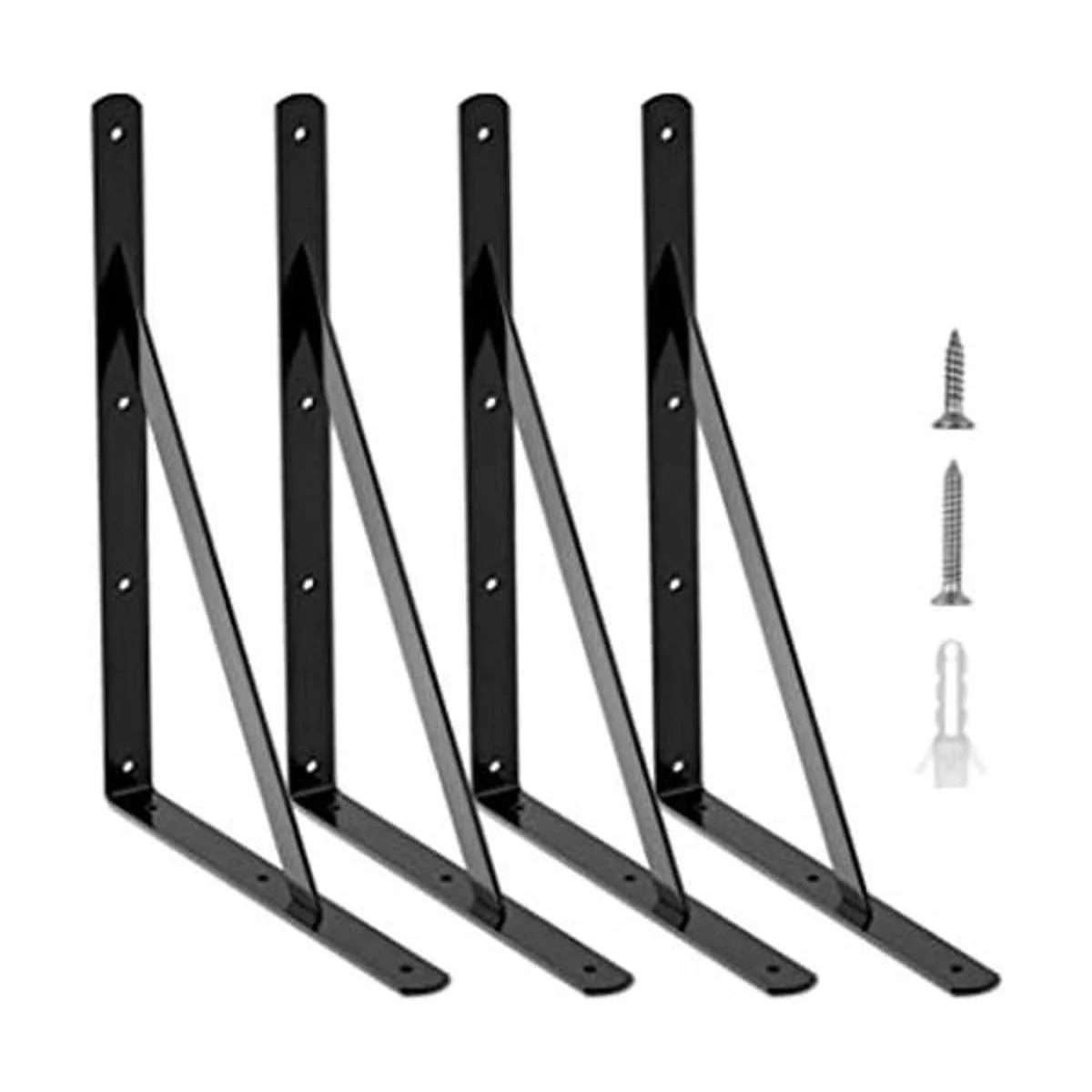 El paquete incluye: viene con 4 soportes de estante negros de 12 x 7.5 pulgadas. 11.811 x 7.480 x 0.606 in largo x ancho x alto. Grosor: 0.079 in