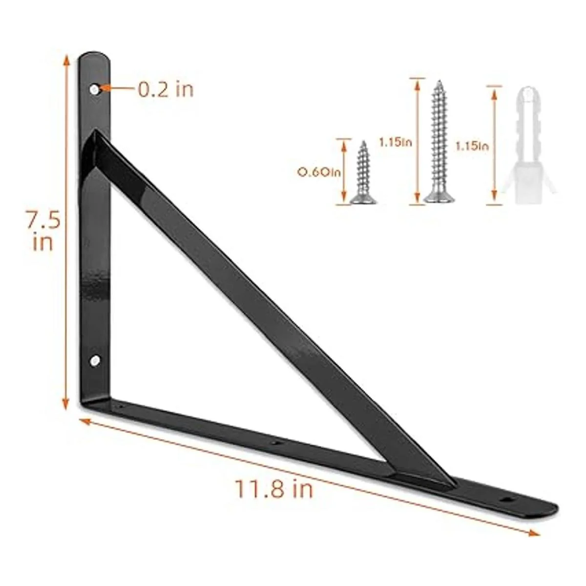 STARVAST Paquete de 4 soportes de estante resistentes de 11.8 x 7.5 pulgadas, estantes flotantes de triángulo negro, soporte de esquina para estante de pared de ángulo de 90 grados 11.811 x 7.480 in