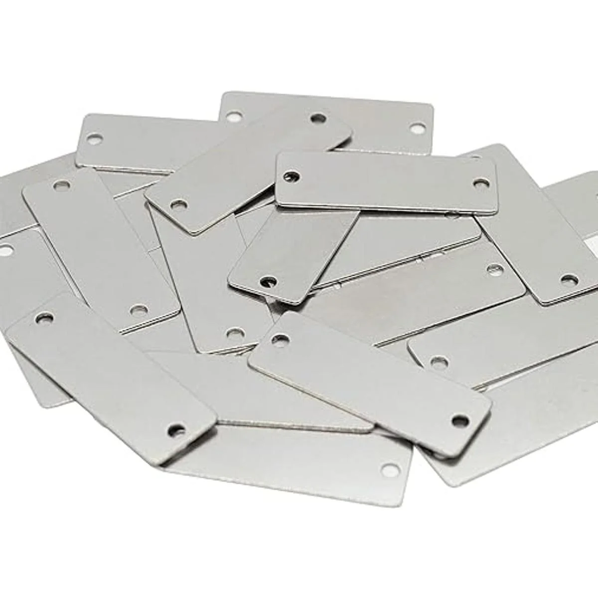 StayMax Paquete de 25 etiquetas en blanco de acero inoxidable con dos agujeros