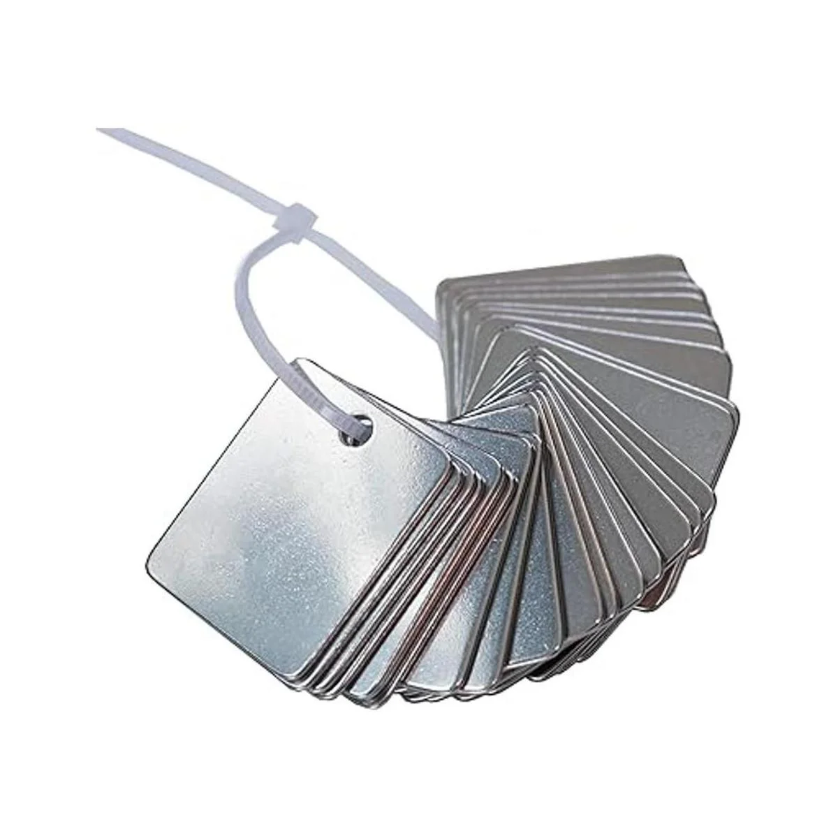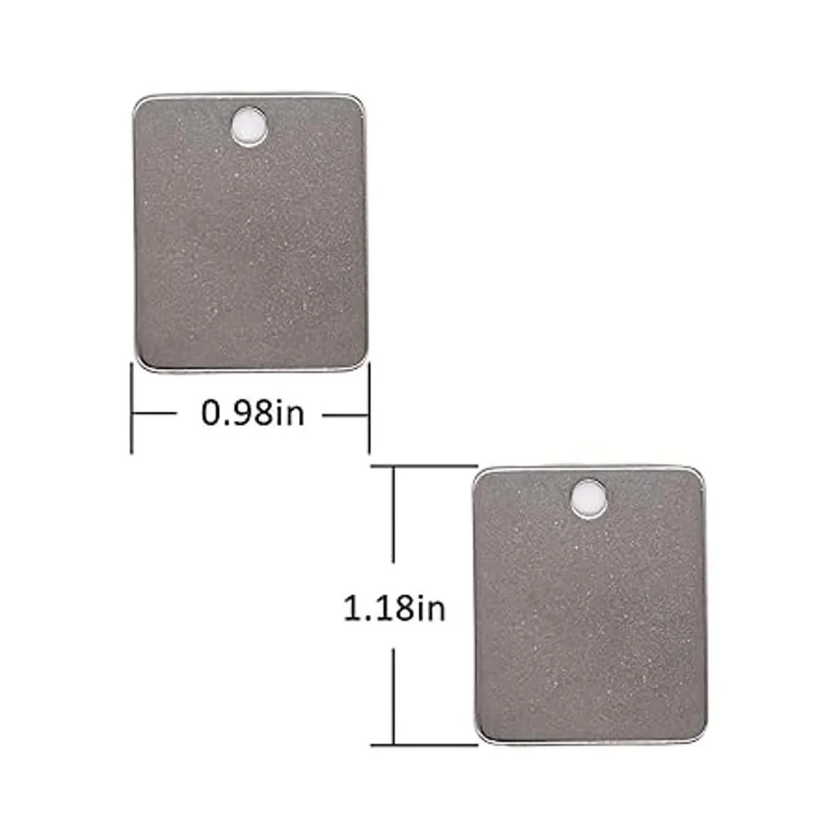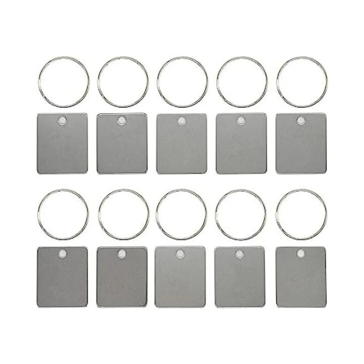 StayMax Rectángulo grabado en blanco sellos en blanco etiquetas de acero inoxidable con llaveros, paquete de 25
